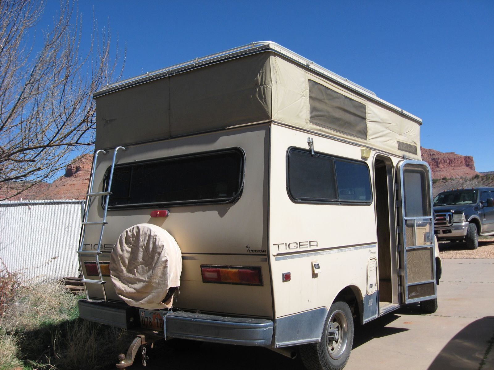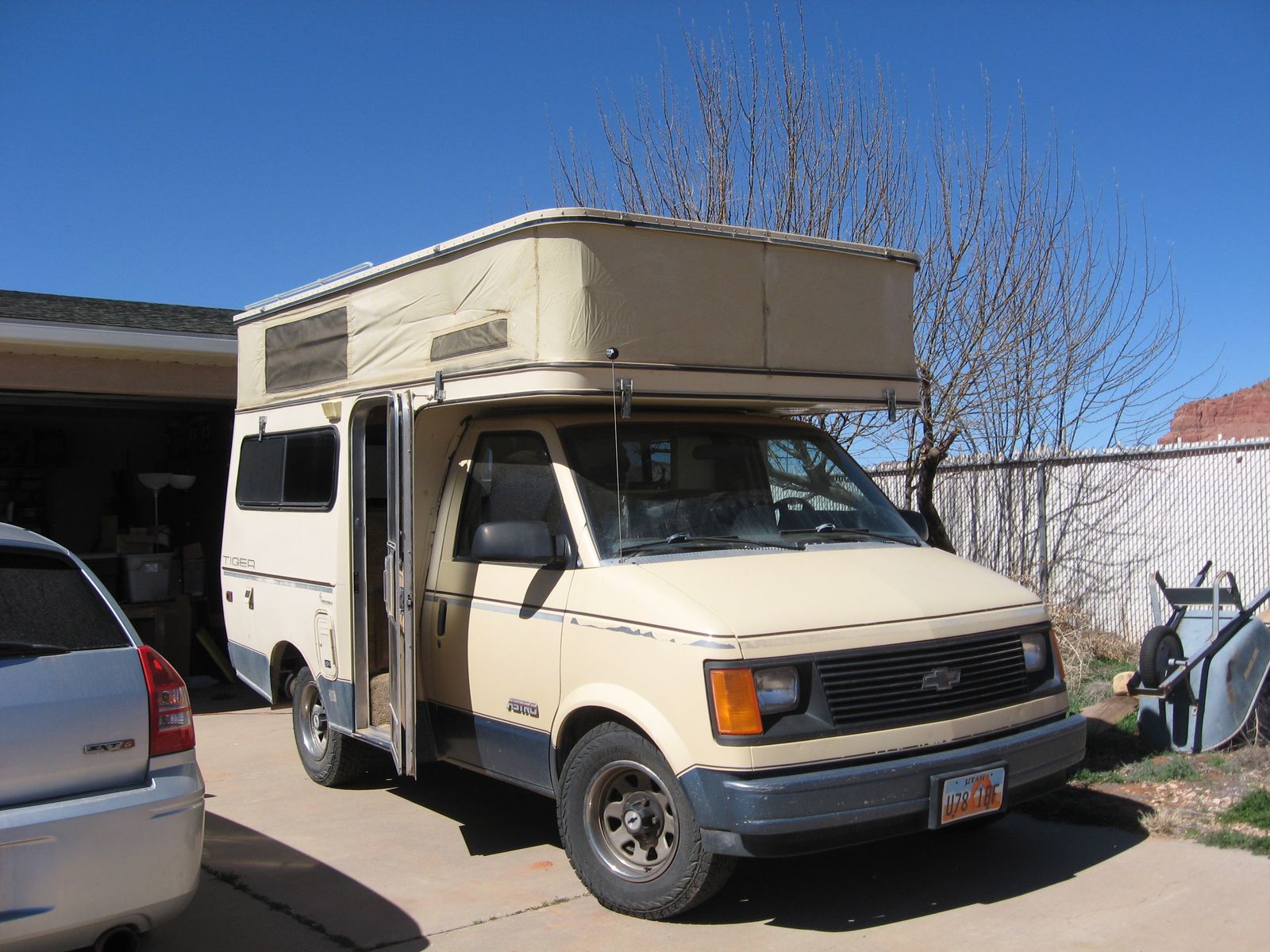 This conversion was done by Provan in Broomfield Colorado. The camper is built on a 1987 Chevrolet Astro Van. The engine is a 4.3 litre V6. The camper portion is based on 4 Wheel camper design with aluminum frame and pop up roof. The outer walls are of aluminum sheet. The van has approximately 99000 miles. I recently installed a new propane furnace, a lithium battery and upgraded the house converter to fully charge battery. Fantastic roof fan, newer muffler and tailpipe, memory foam mattress, recent transmission fluid change to full synthetic, recent tune up, new radiator fluid, newer Kumho 8 ply rated tires, which increased stability on the highway. It has new horizontal propane tank with gauge. The interior is pretty much original. I installed LED lights. This model did not come with a toilet or shower. It does have a water fresh water tank and 12 V pump which I have never used. It has a recent tune up which included new spark plugs an the throttle body was gone rebuilt. 4356445940