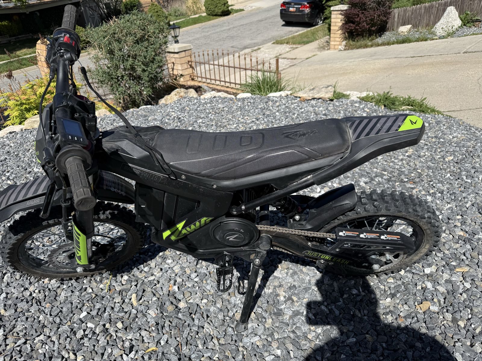 The 48V Rawrr Mantis Mini Electric All-Terrain eMoto is the ideal choice for younger riders who want a powerful, high-performance bike with an emphasis on safety. Weighing just 99 lbs, the Mantis Mini is agile and responsive, capable of reaching its top speed in just 5.4 seconds, thanks to its 3500W motor. But we know that safety is just as important as power, so we've packed the Mantis Mini with a range of advanced features designed to keep riders secure, no matter the terrain.