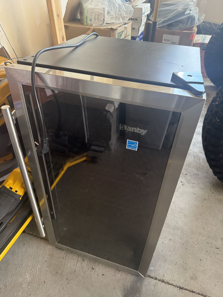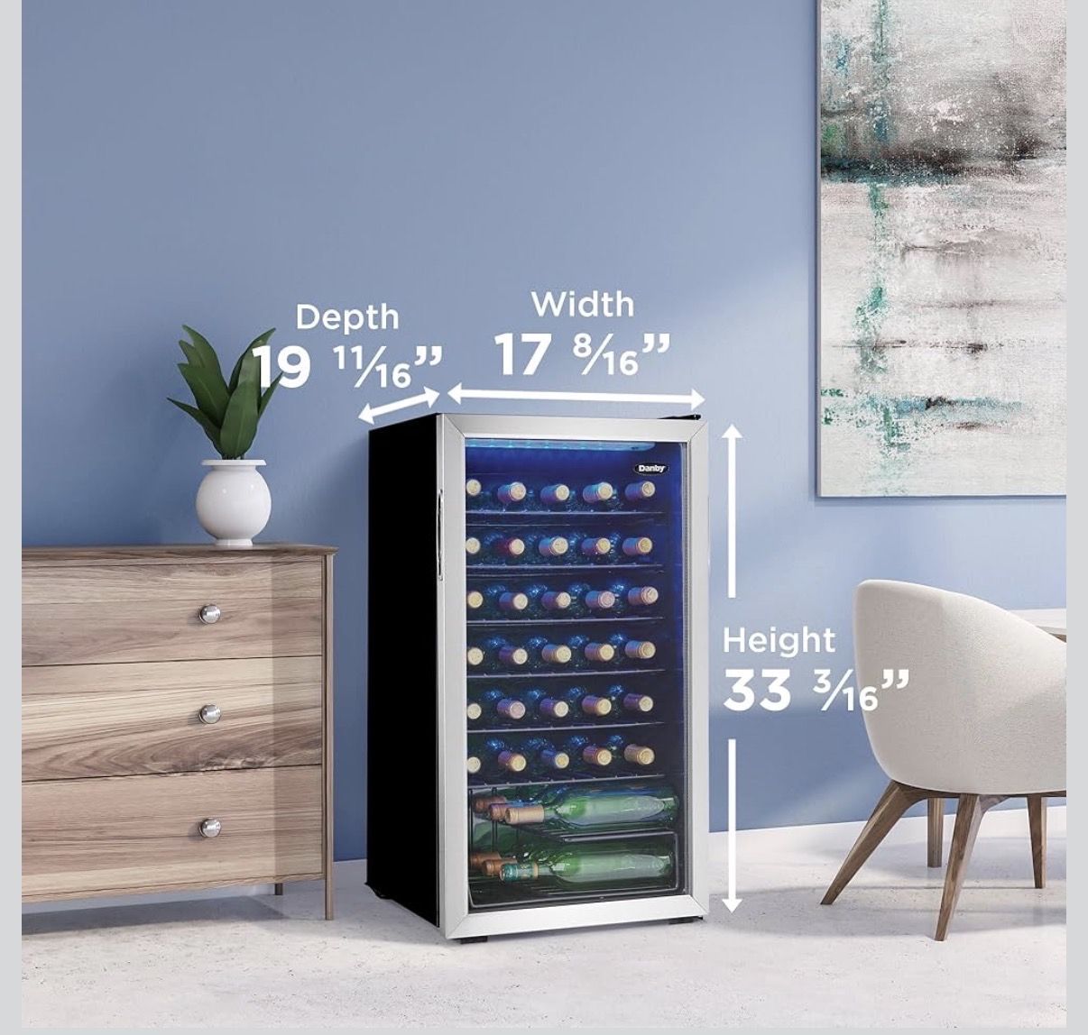 VenmoDanby DWC036A1BSSDB-6 3.3 Cu. Ft. Free Standing Wine Cooler, Holds 36 Bottles, Single Zone Fridge With Glass Door - Chiller for Kitchen, Home Bar, Black/Grey