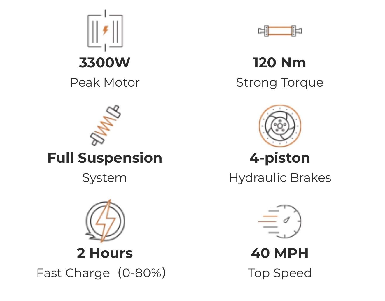 Max Speed 40MPH -Off-road mode(Theactual speed will vary due to rider weight and road conditions)