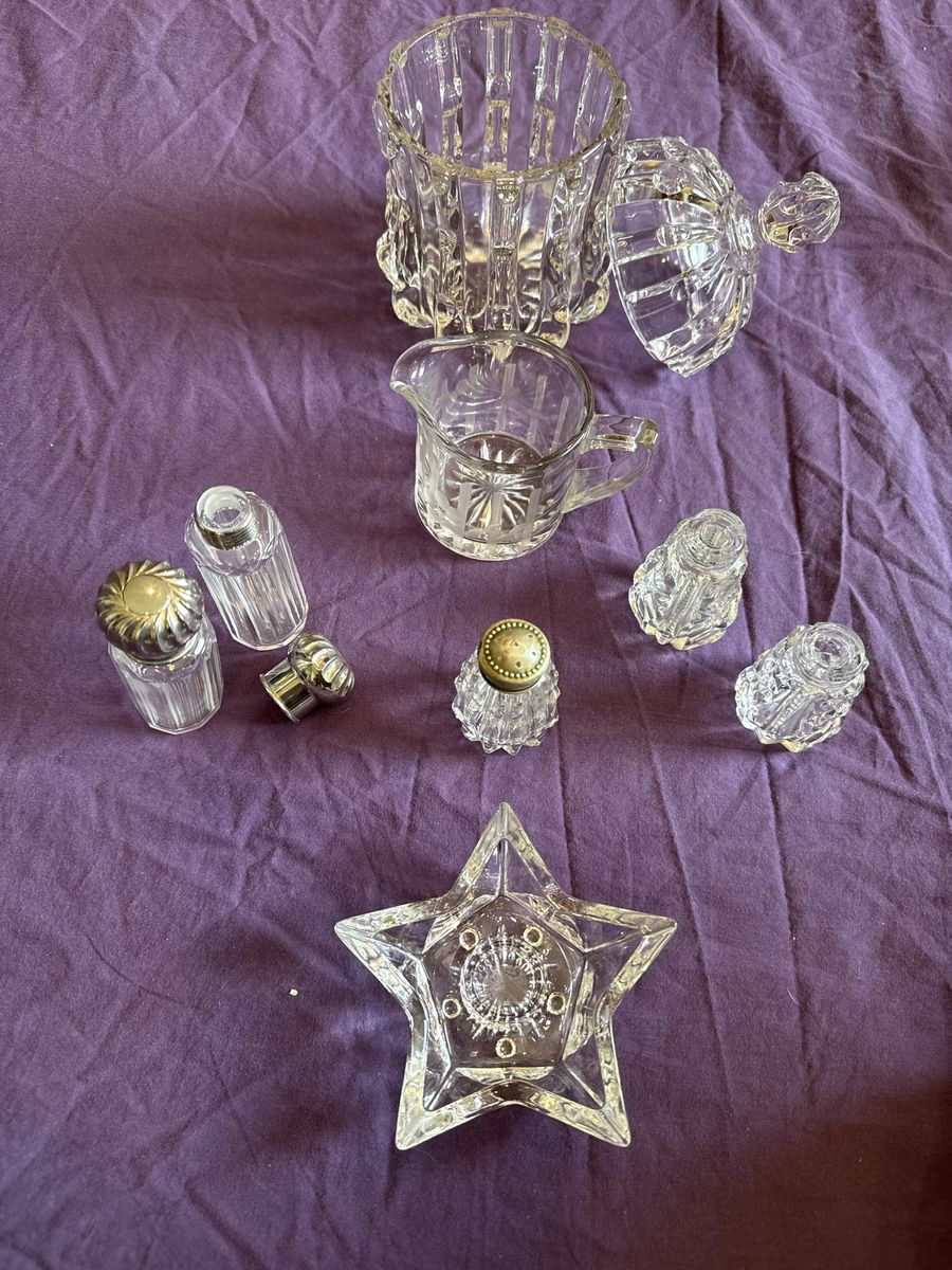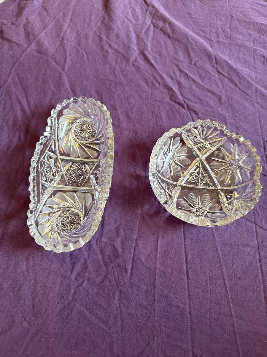 17 pieces of Lead Crystal or Cut Glass. Antique and vintage. $75 for the lot. Individual pieces by offer. Text with questions 801-450-0672. Rick