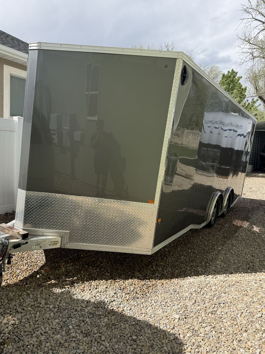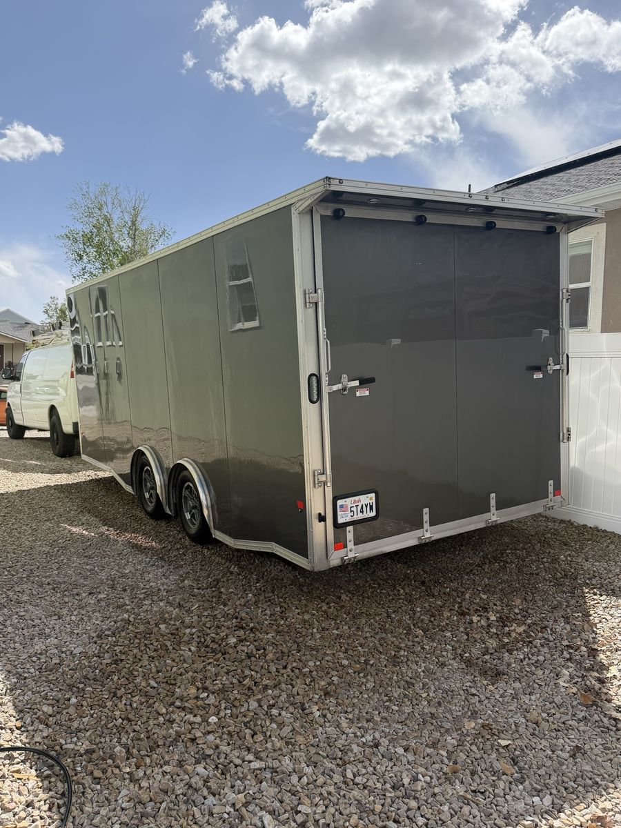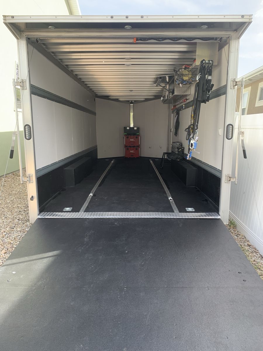 2020 ALCM 8.5X20 EZ HAUL car hauler/enclosed box trailer. Clean title in hand. Used like new condition. Spray liner on floor and 14” up side walls. Rails on both sides for ratchet straps, overhead shelves and Diamond plate bins. $13,500 or best offer. Serious inquiries only please.