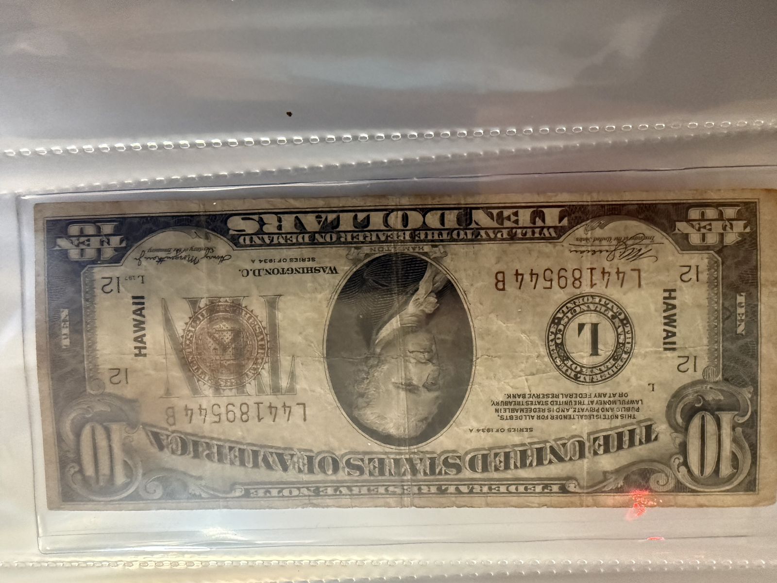 Zelle1934 $10 bill Hawaii emergency note