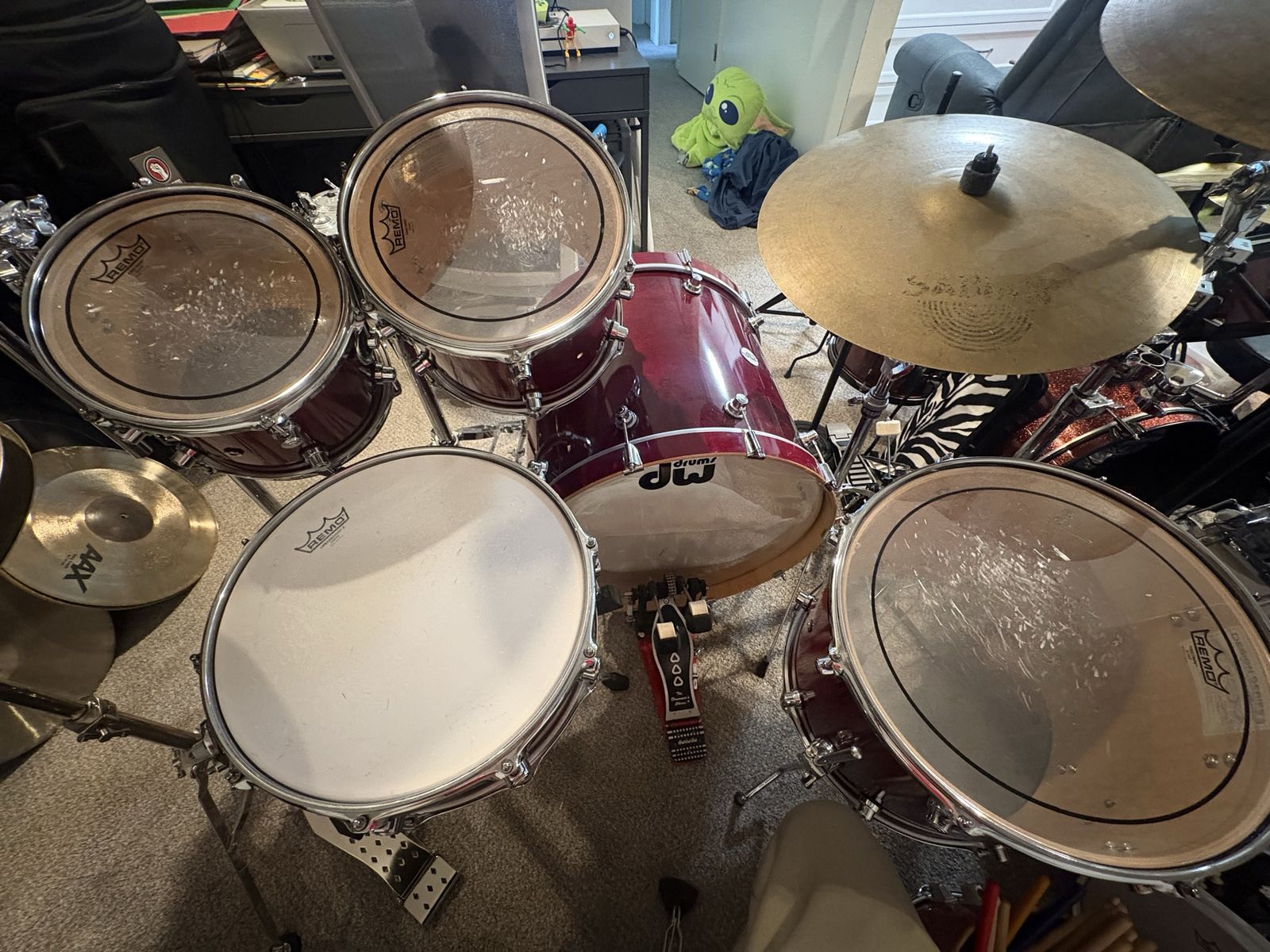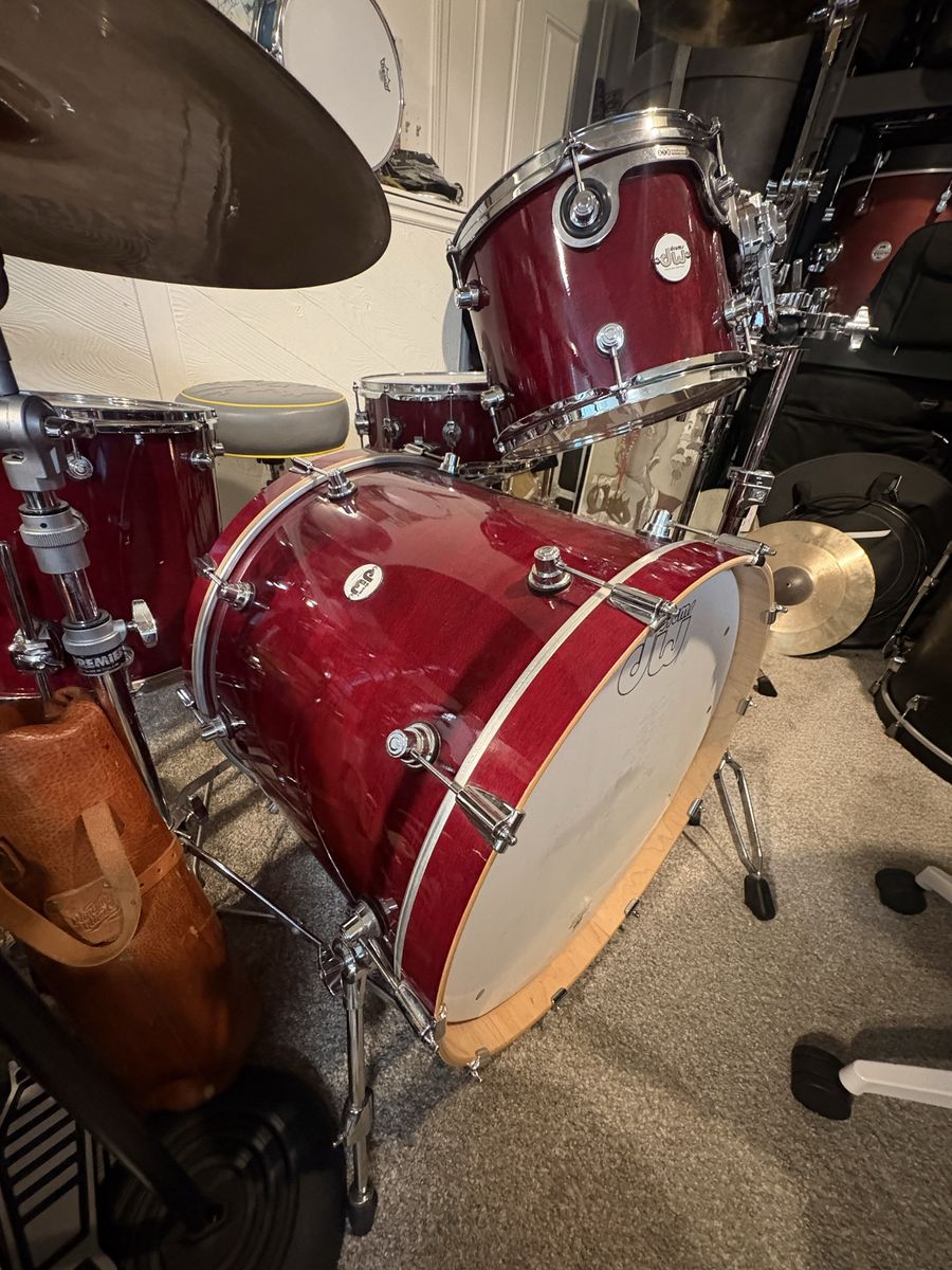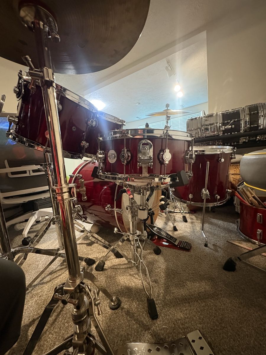 PayPalDW design series in cherry stain. Drums are in fantastic shape. Only a few tiny dings. Sizes are 10,12,16,22 with a 14” matching snare. Price is for the shells only. $1300 obo These drums sound killer, fine thread tension rods make for easy tuning. Drum heads are in good shape as well.