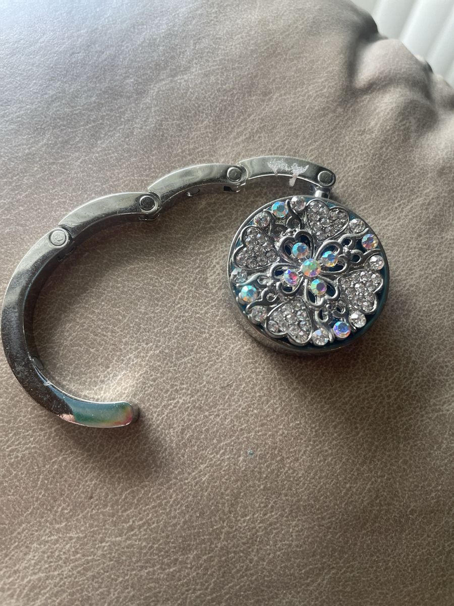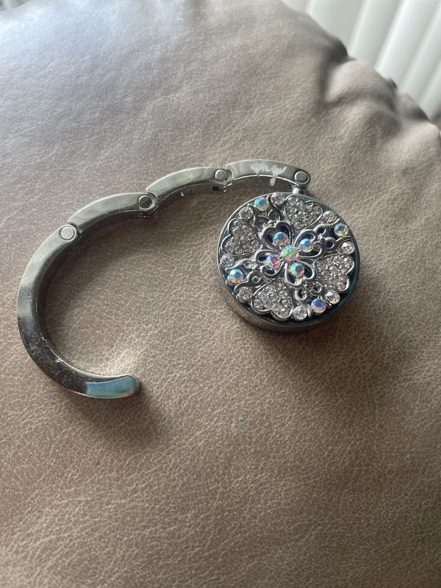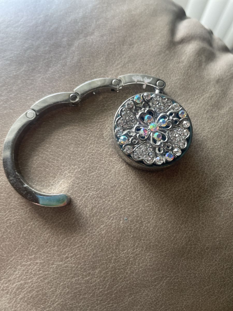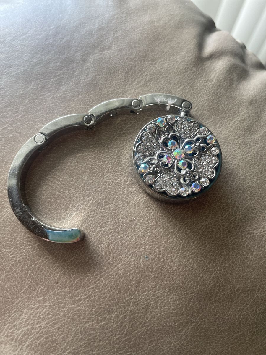 VenmoThis Decorative folding purse clip allows you to hang your purse on the edge of the table. Nifty huh.