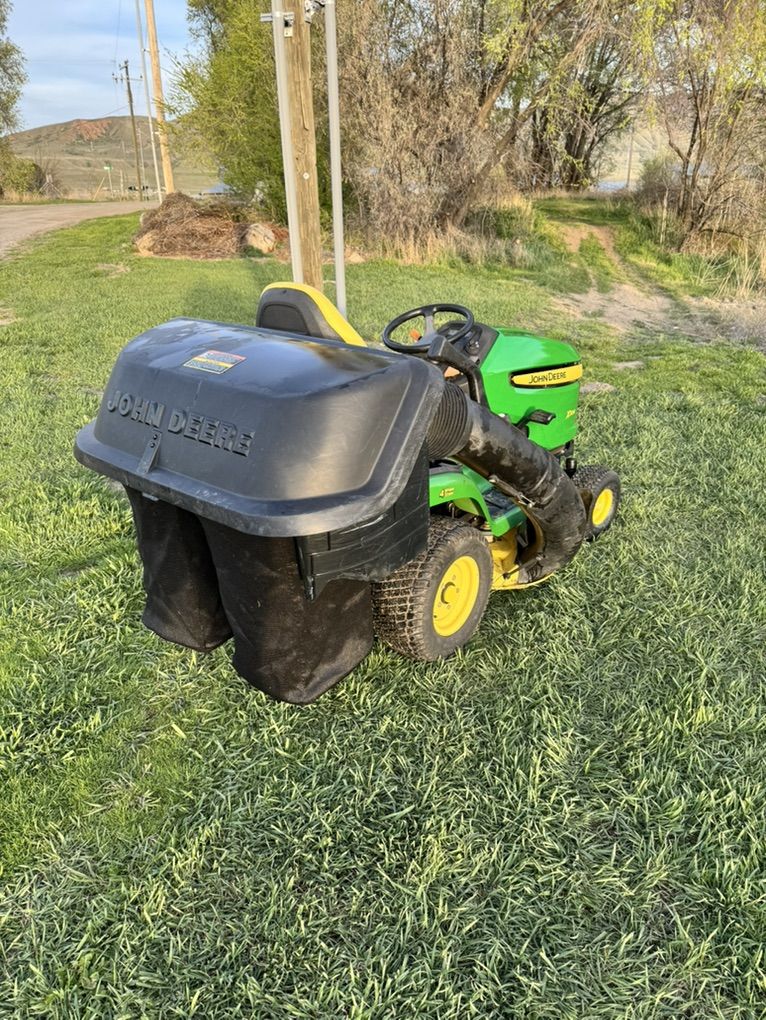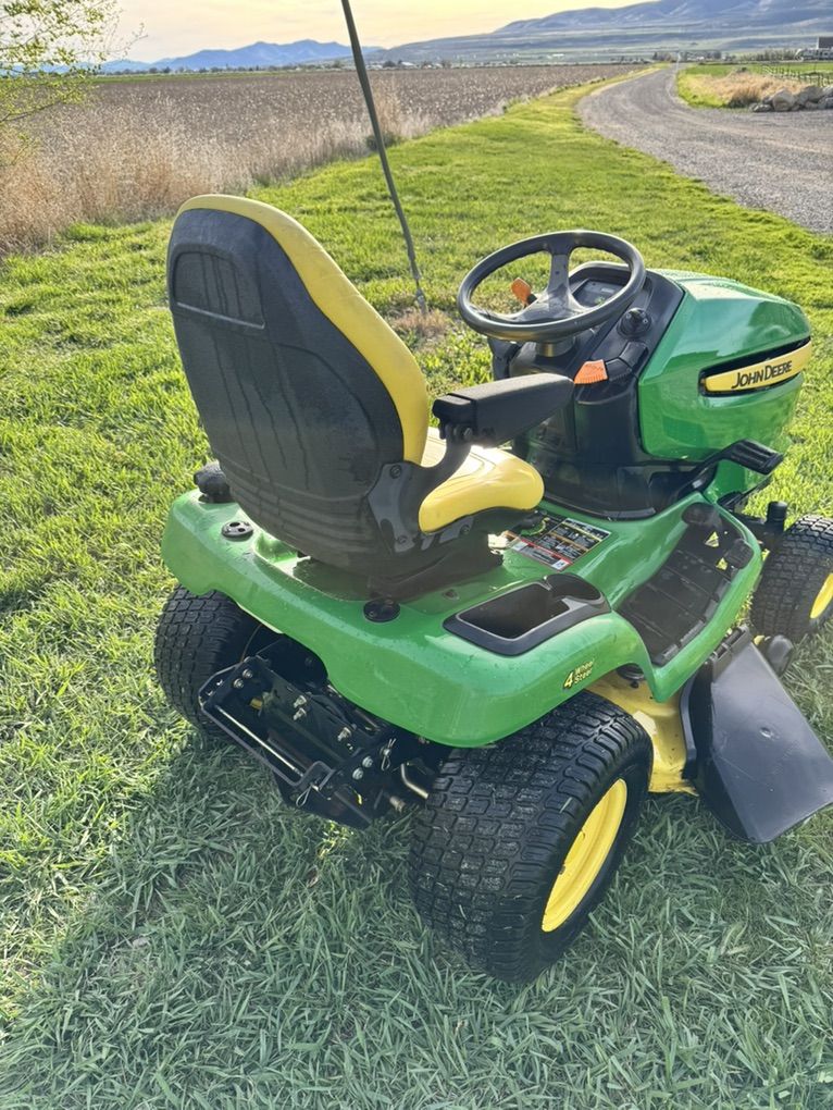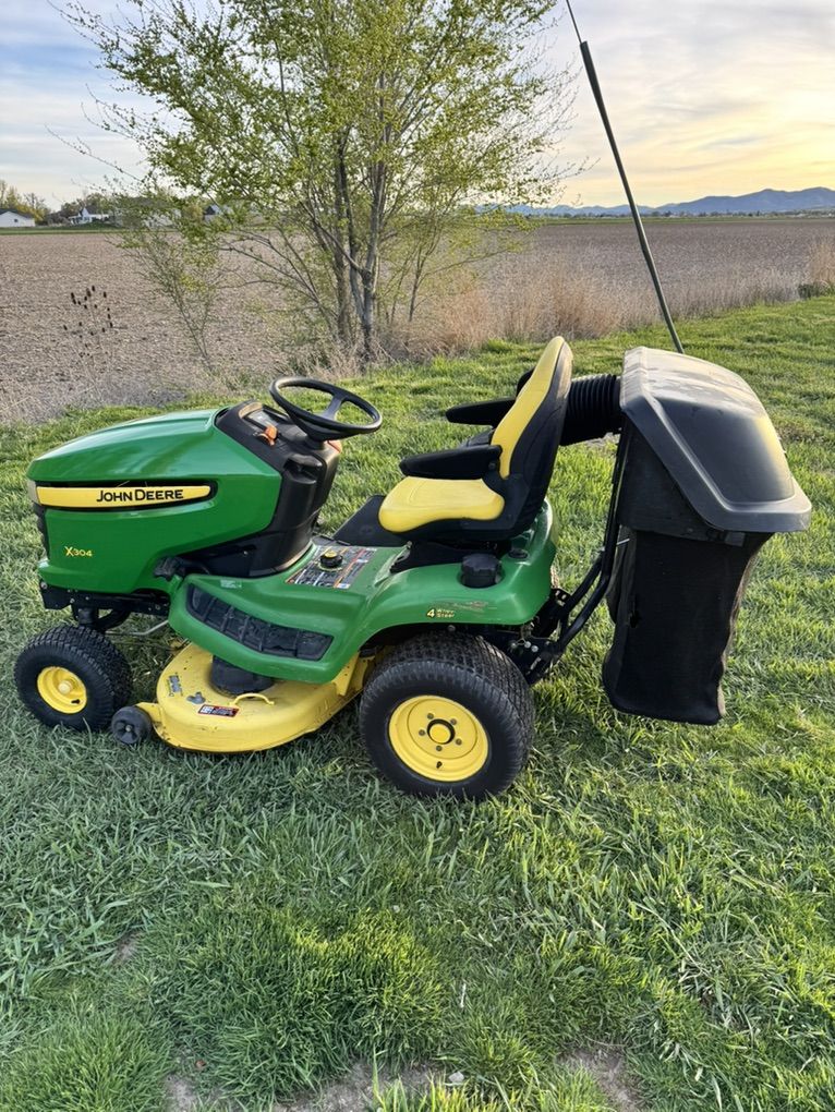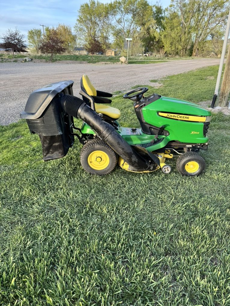 VenmoJohn Deere X304 riding lawn tractor four-wheel steer 42 inch mower deck V twin Kawasaki engine and bagging system 592 hours great mower, freshly serviced with new blades and drive belt ready to mow. Text or call with questions $2400 OBO.