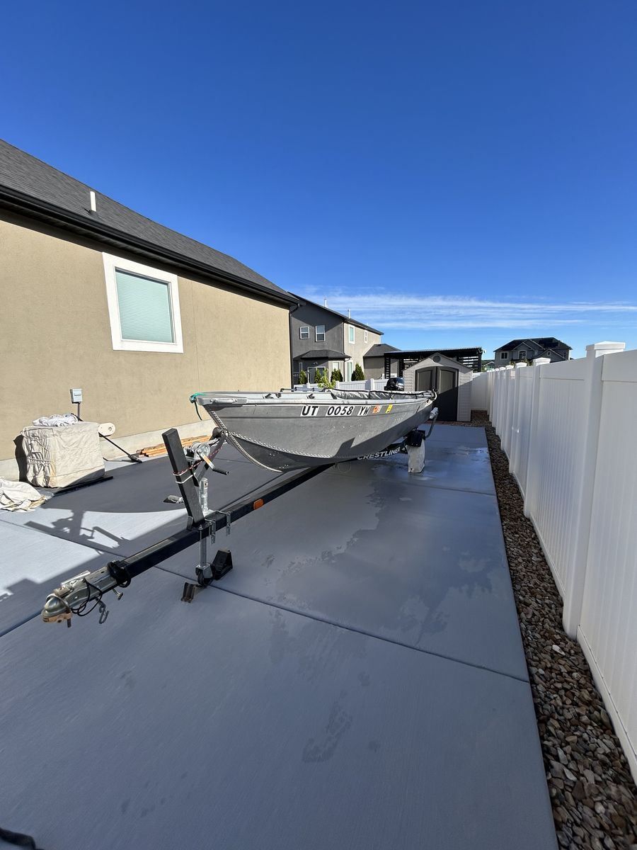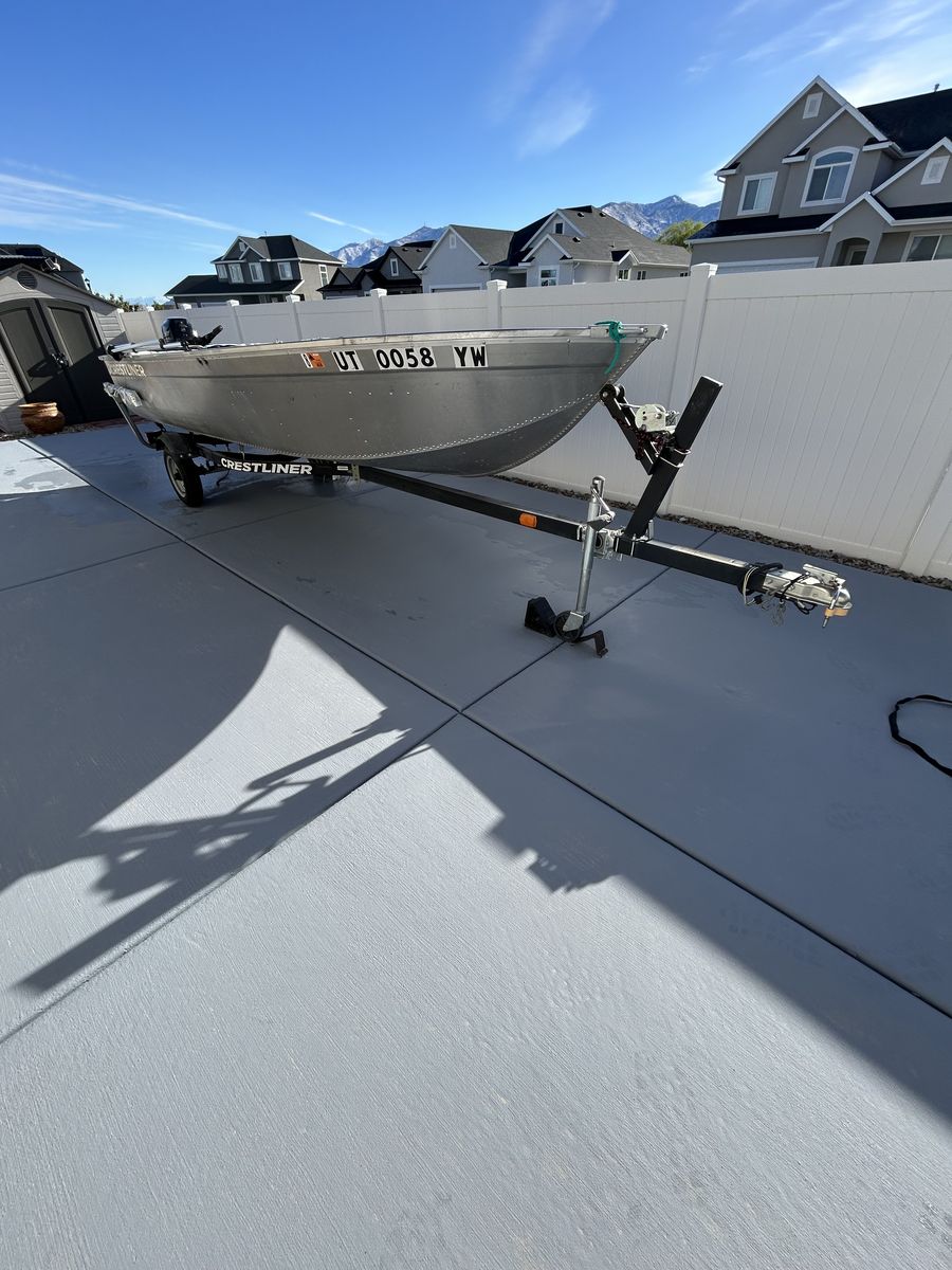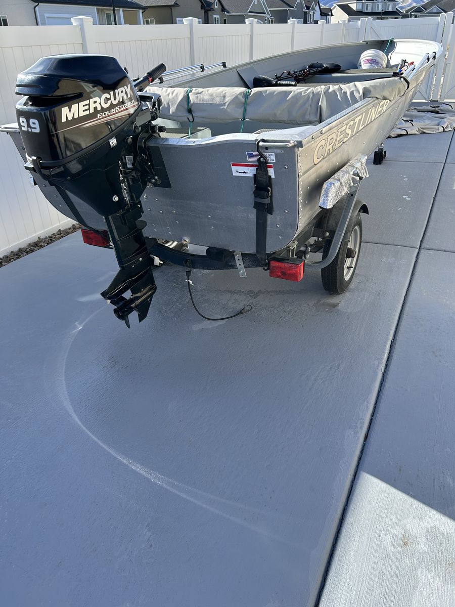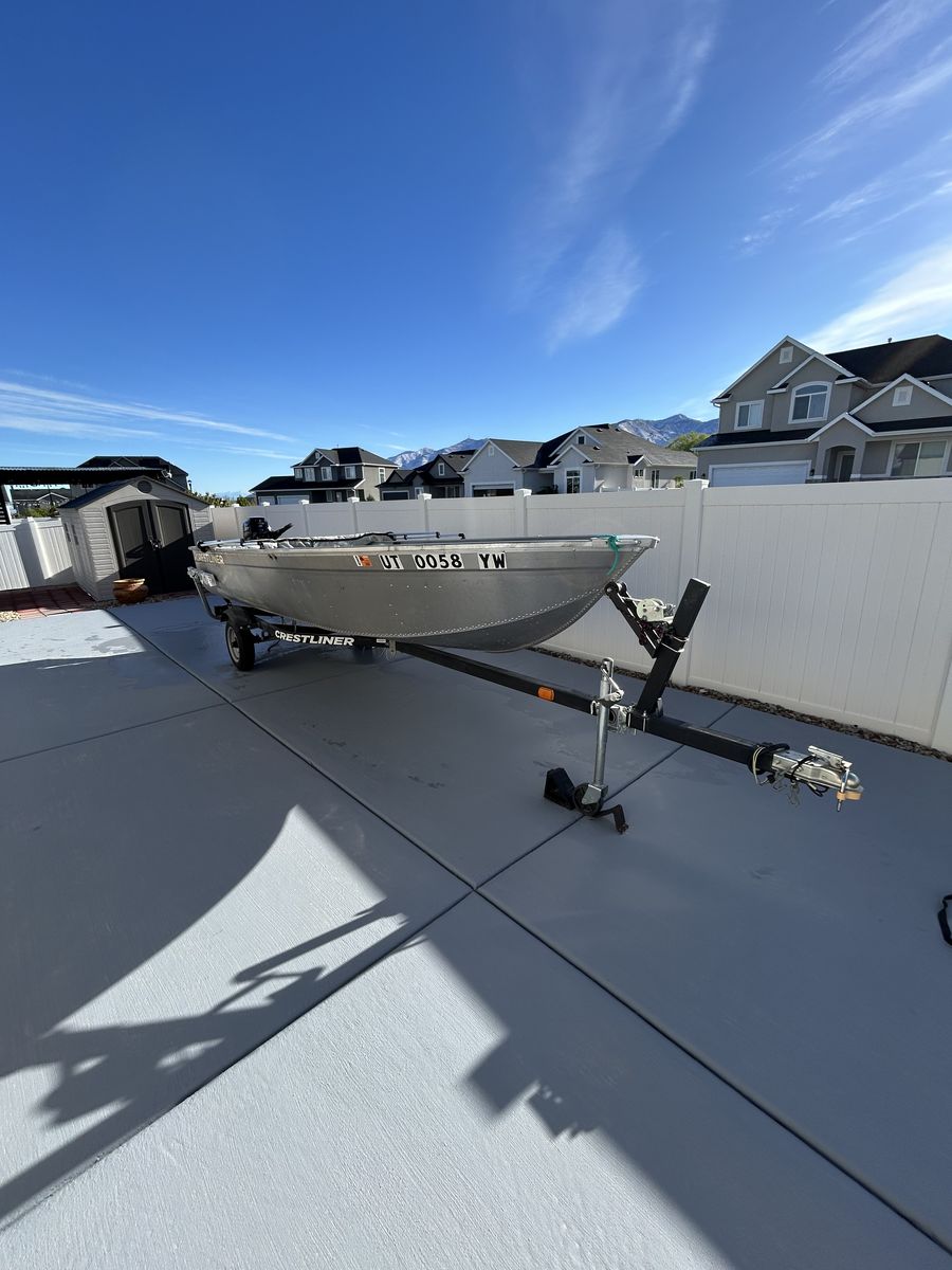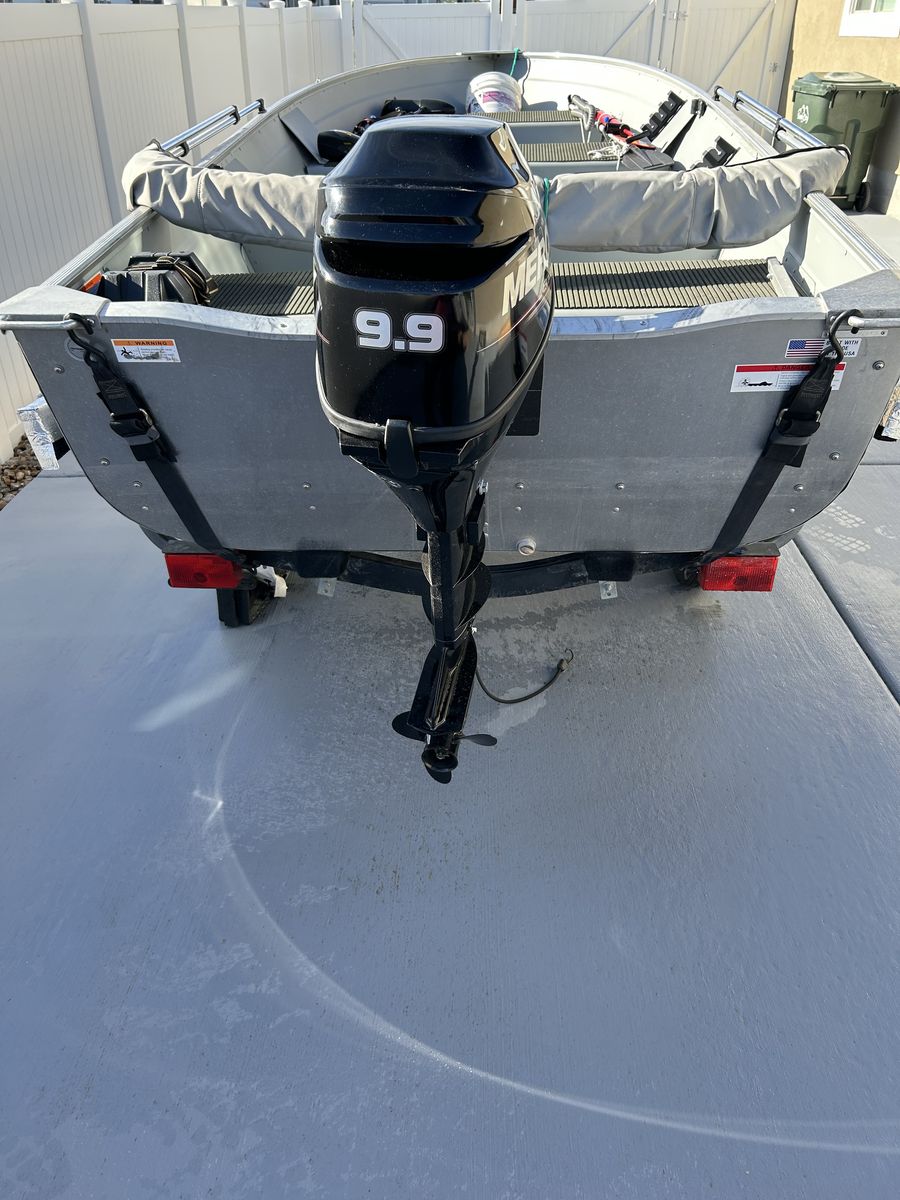 This is a 16ft Deep V hull with a 9.9 Merc outboar. Small electric trolling motor and small Garmin fish finder, both transom mounts. Bimini top. This boat has been rarely used. This boat is located in Tooele.