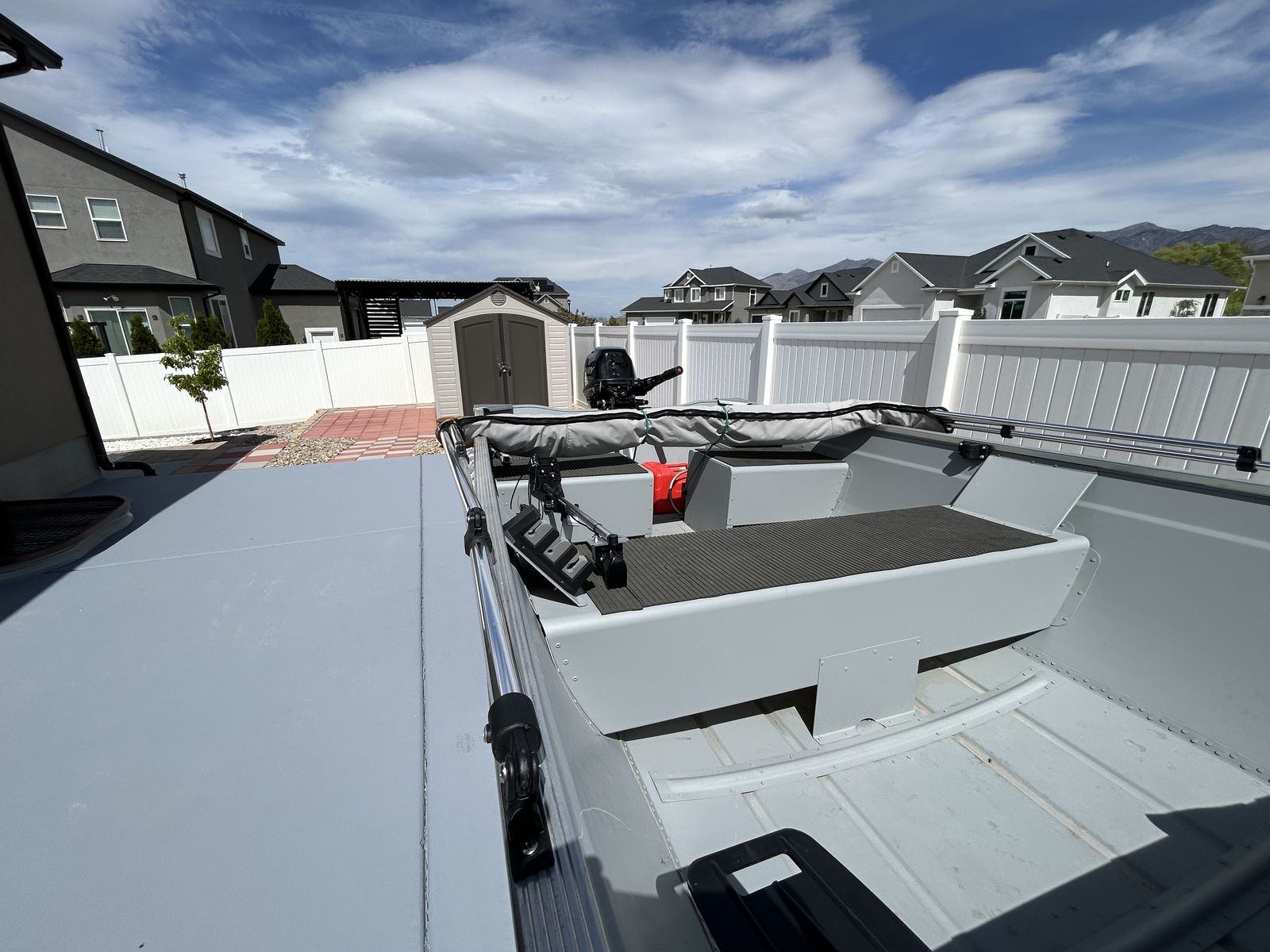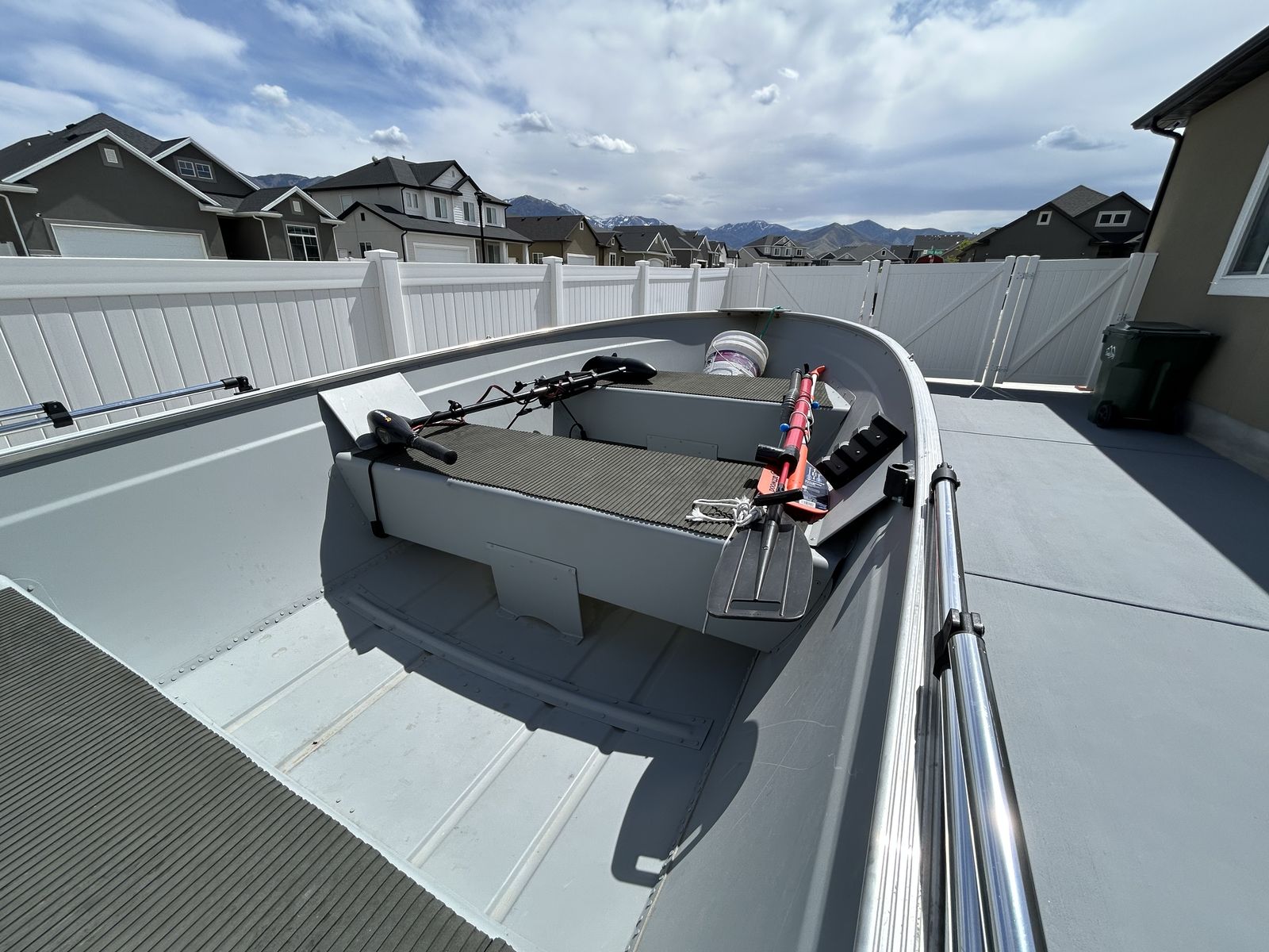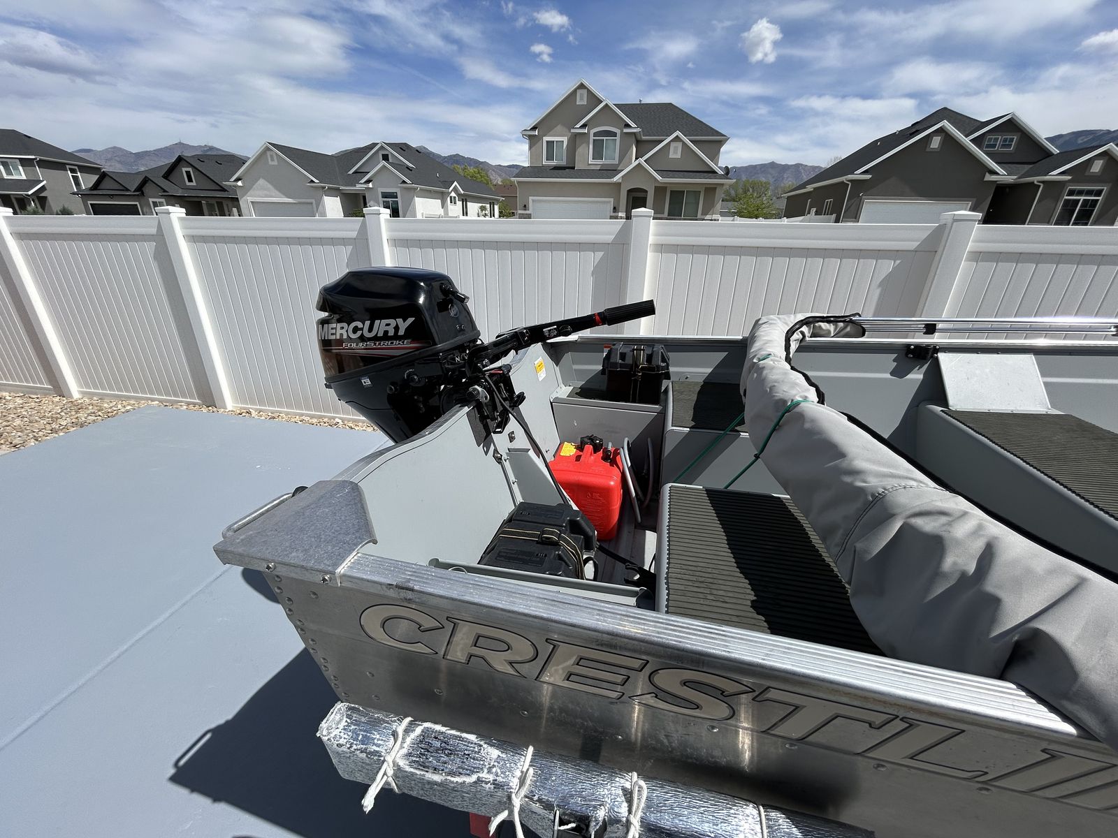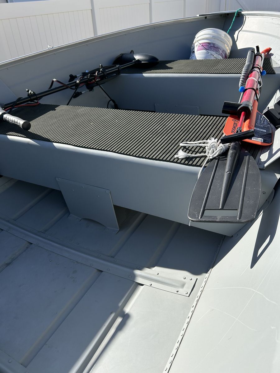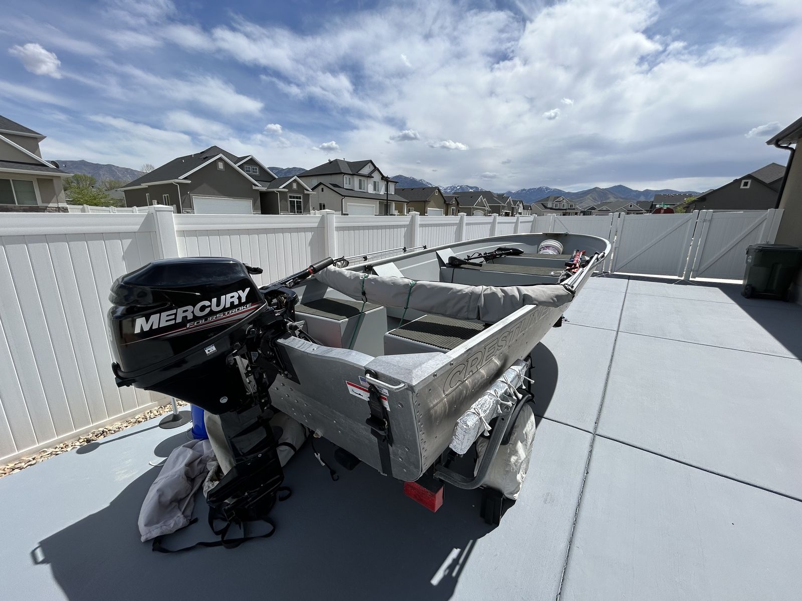 This is a 16ft Deep V hull with a 9.9 Merc outboar. Small electric trolling motor and small Garmin fish finder, both transom mounts. Bimini top. This boat has been rarely used. This boat is located in Tooele.