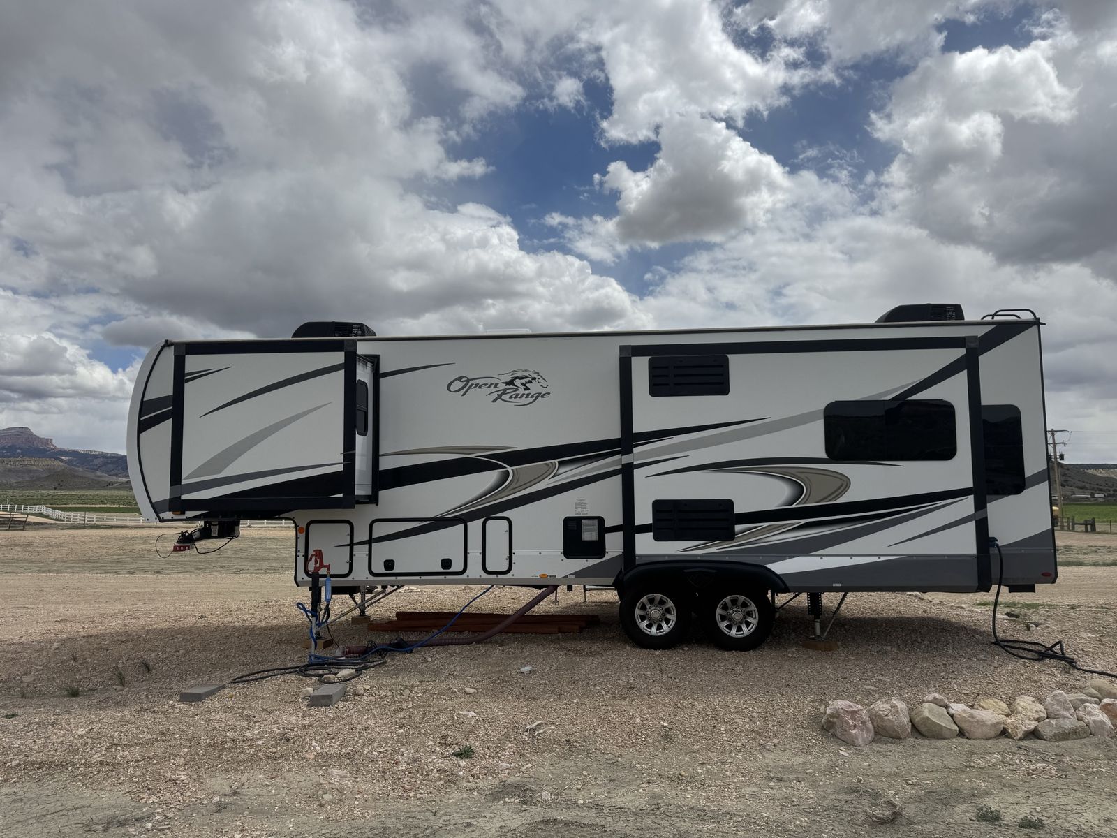 Selling our rv that is in pristine condition. Purchased branded new to live in while building our house. Towed less than 500 miles. Maintained and extremely well taken care of. Now that the house is built we no longer need it. Please text for more info. Outside is a slightly faded due to being exposed to full time sun. Equipped with Anderson hitch. Has a skirting kit