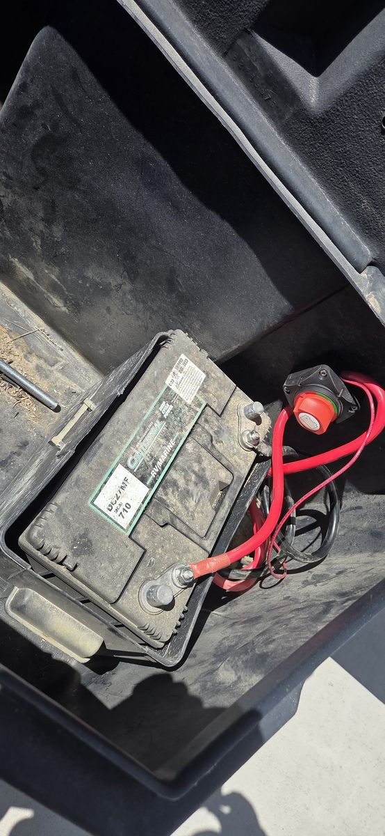 _Rated water-resistant for all-weather performance_ TOOLBOX with RV battery, battery box and battery shutoff switch inside, lockable.