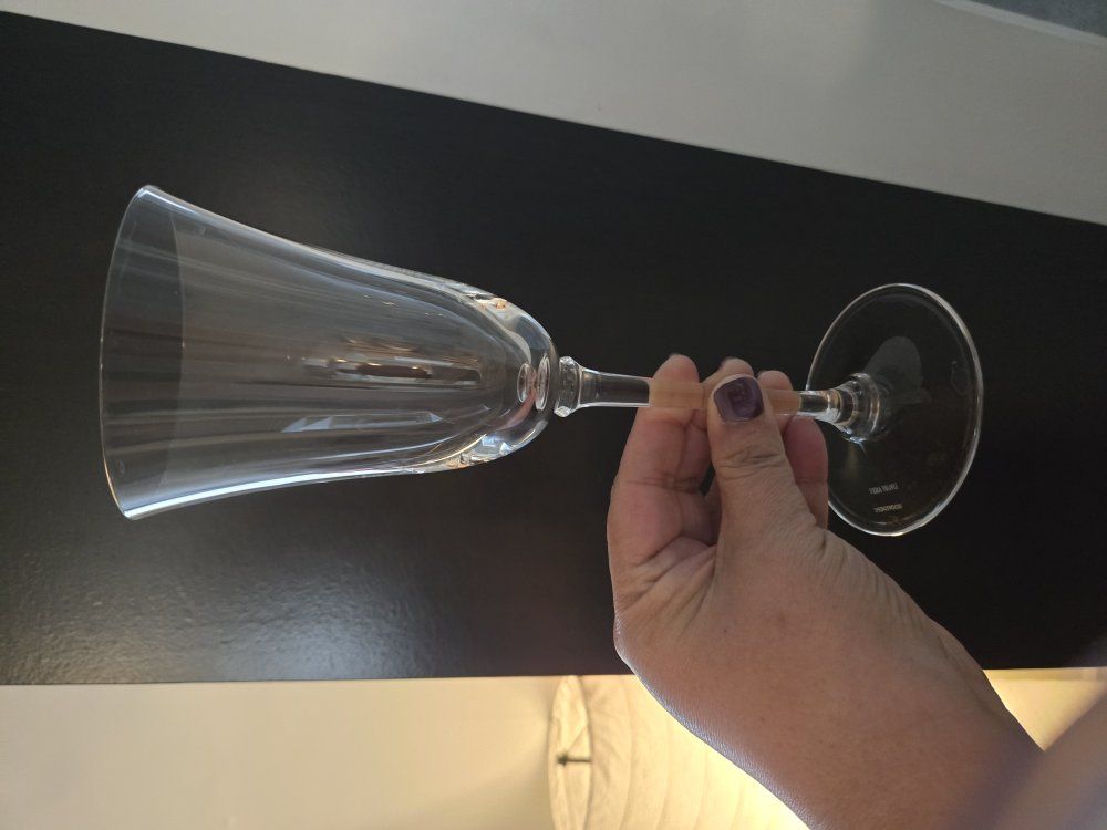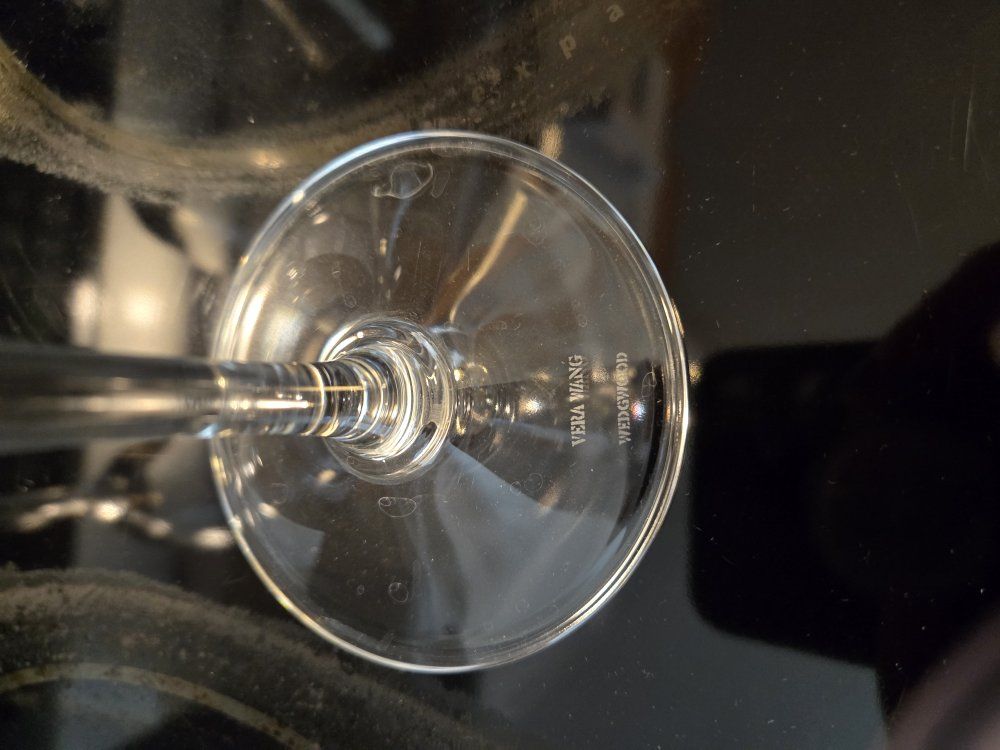 Zelle4 Vera Wang Wedgewood crystal wine glasses. The glasses stand 9 inches tall.