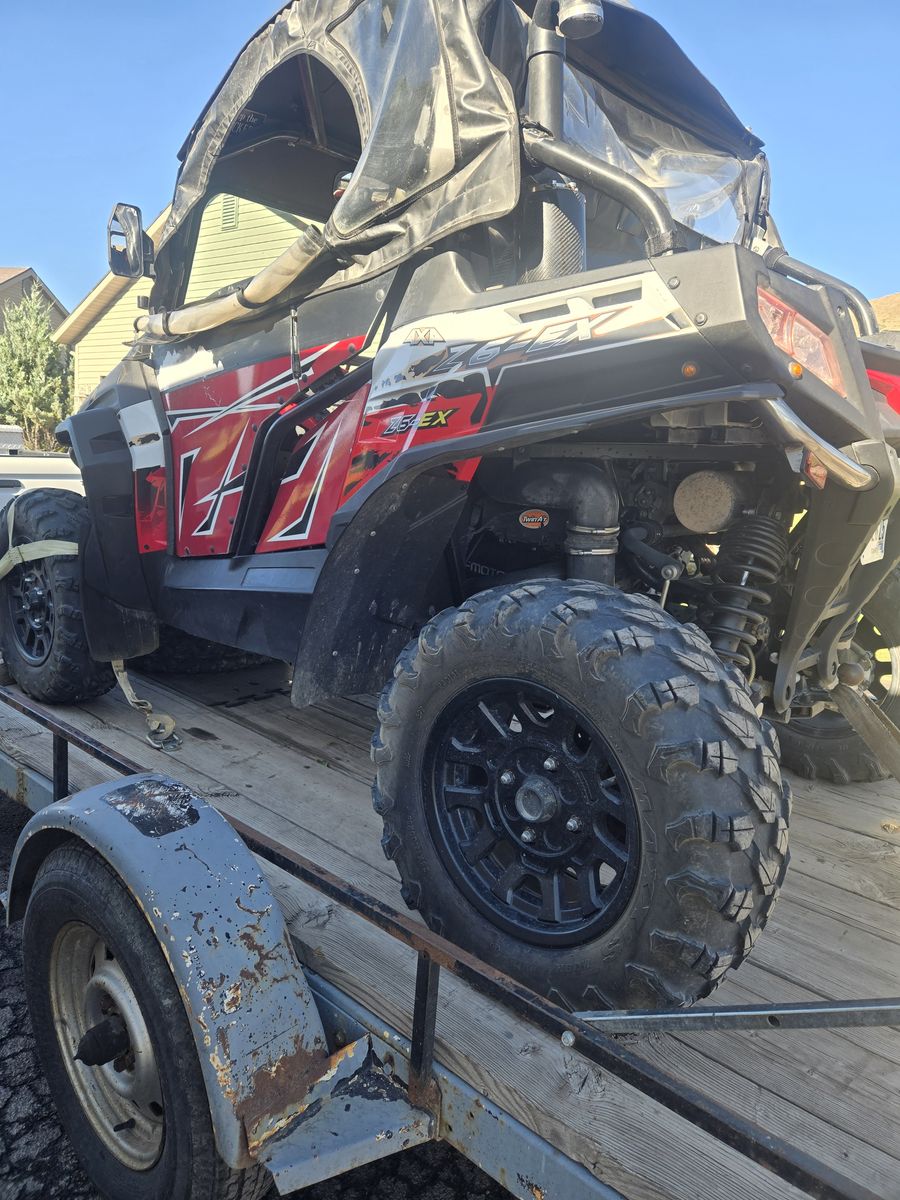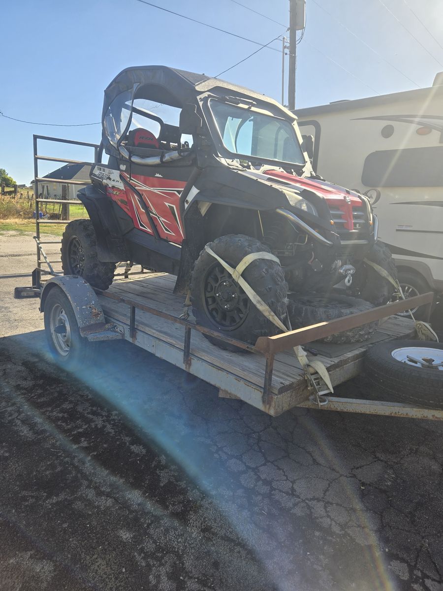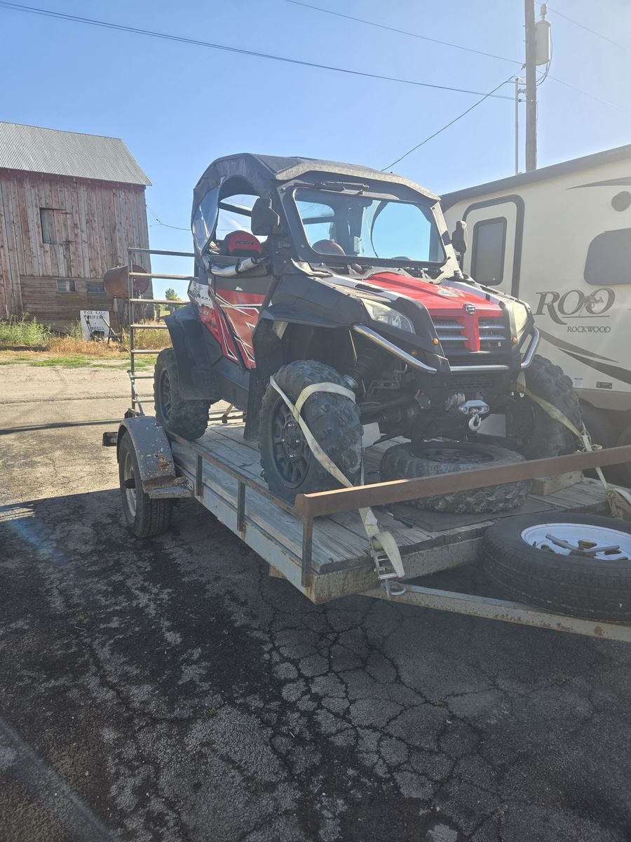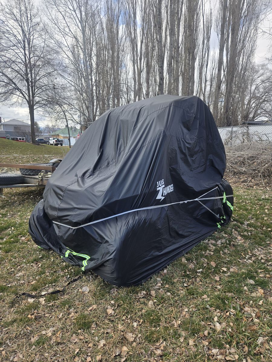 Runs great, 4300 miles, mostly driven on back roads, 4 wheel drive hardly used, comes with the trailer, easy to load and haul, glass windshield, new battery, has cover and spare , the zippers on the windows dont work, the tilt wheel slowly leaks back up.
