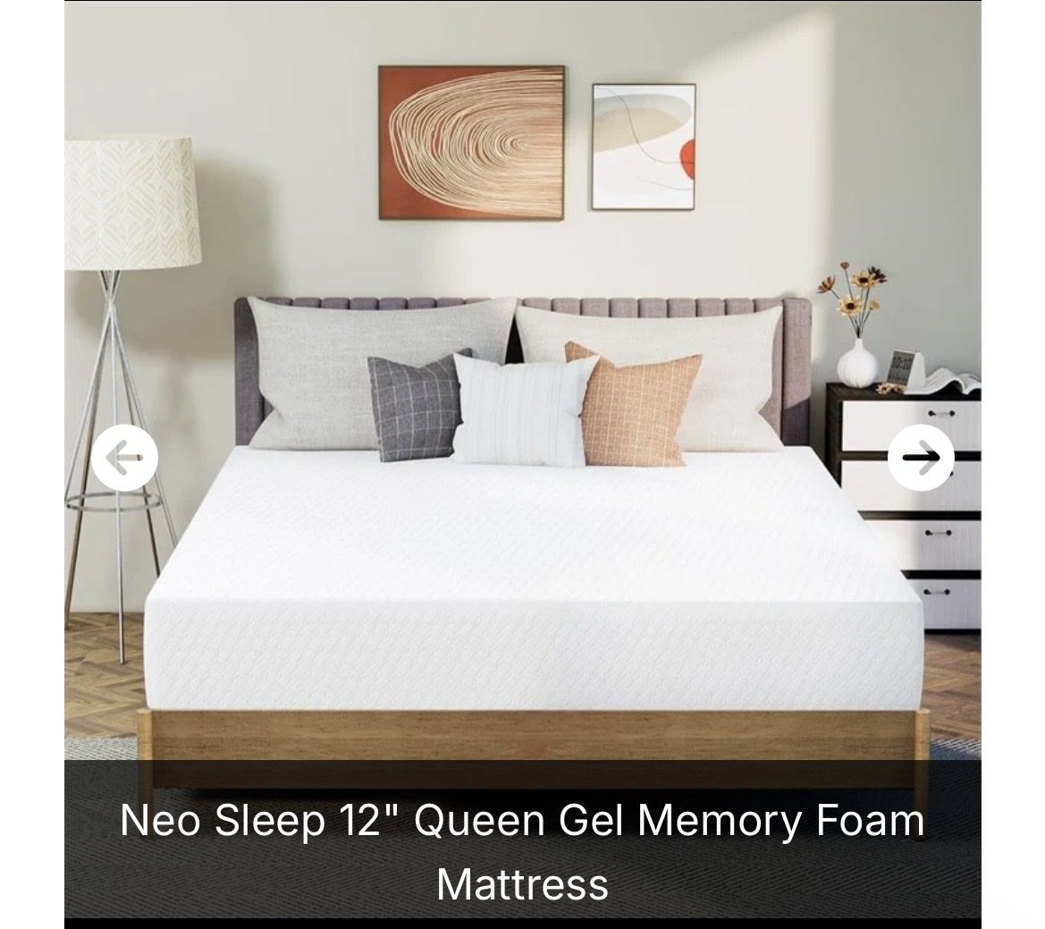 ApplePayNew In Box (NIB) NEO SLEEP 12” Queen Gel Infused Memory Foam Mattress. Still compressed and wrapped in original manufacturers packaging. Layers of foam topped with a cooling comfortable layer of gel infused memory foam for the ultimate night’s sleep. See photos for more details. Asking $135 or best offer