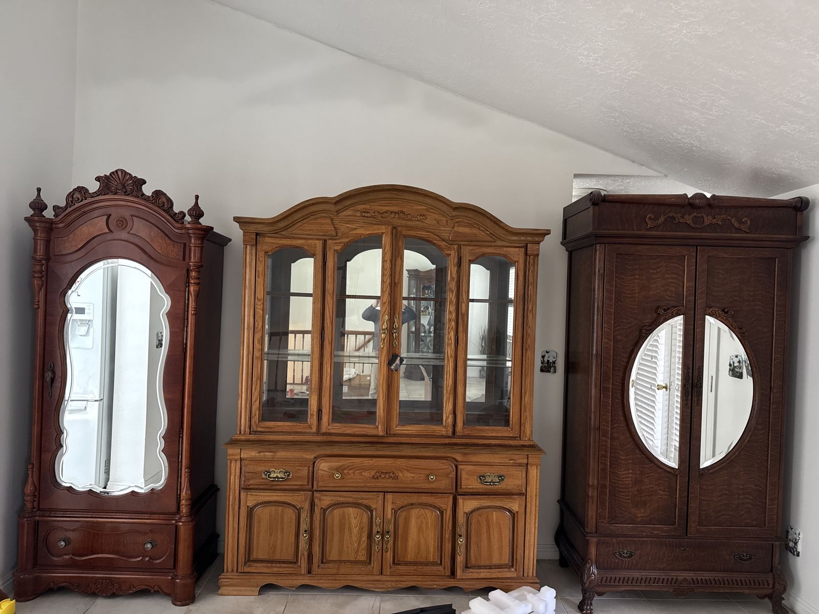 Venmo2 armoire, one China hutch for sale. We are moving and need to sell them, they are all in excellent condition. China hutch is like brand new $225 each or best offer call Randy 801-726-3140.