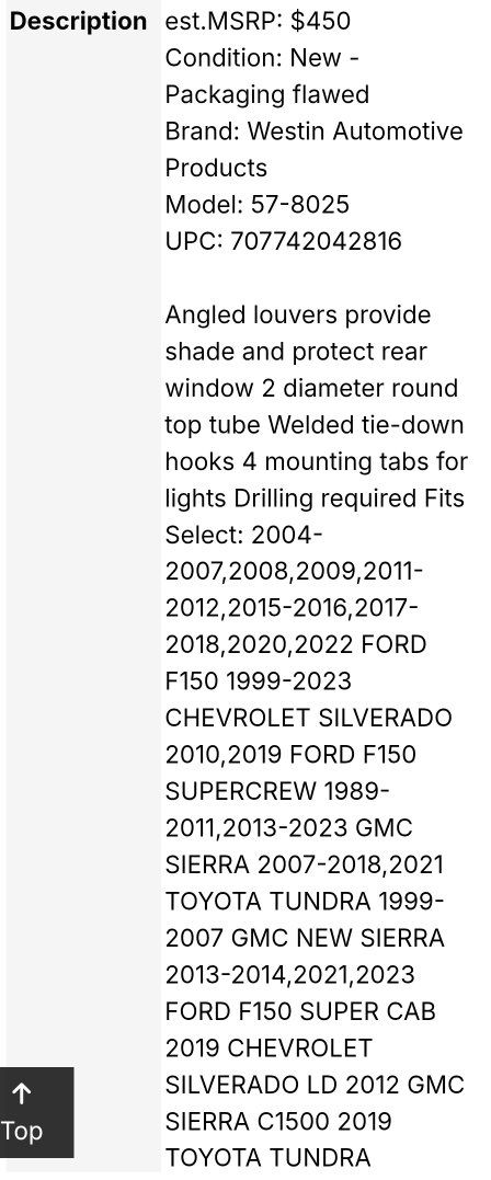 New in box WESTIN HEADACHE RACK WITH BRACKETS POWDER Coated cost $ 450 Selling for $300