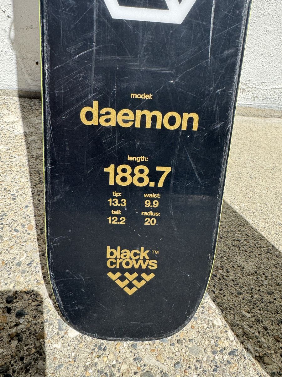 Skis: Black Crow Daemon 189cm 133-99-122 Condition: Great (repaired base hit pictured, did NOT go to core)