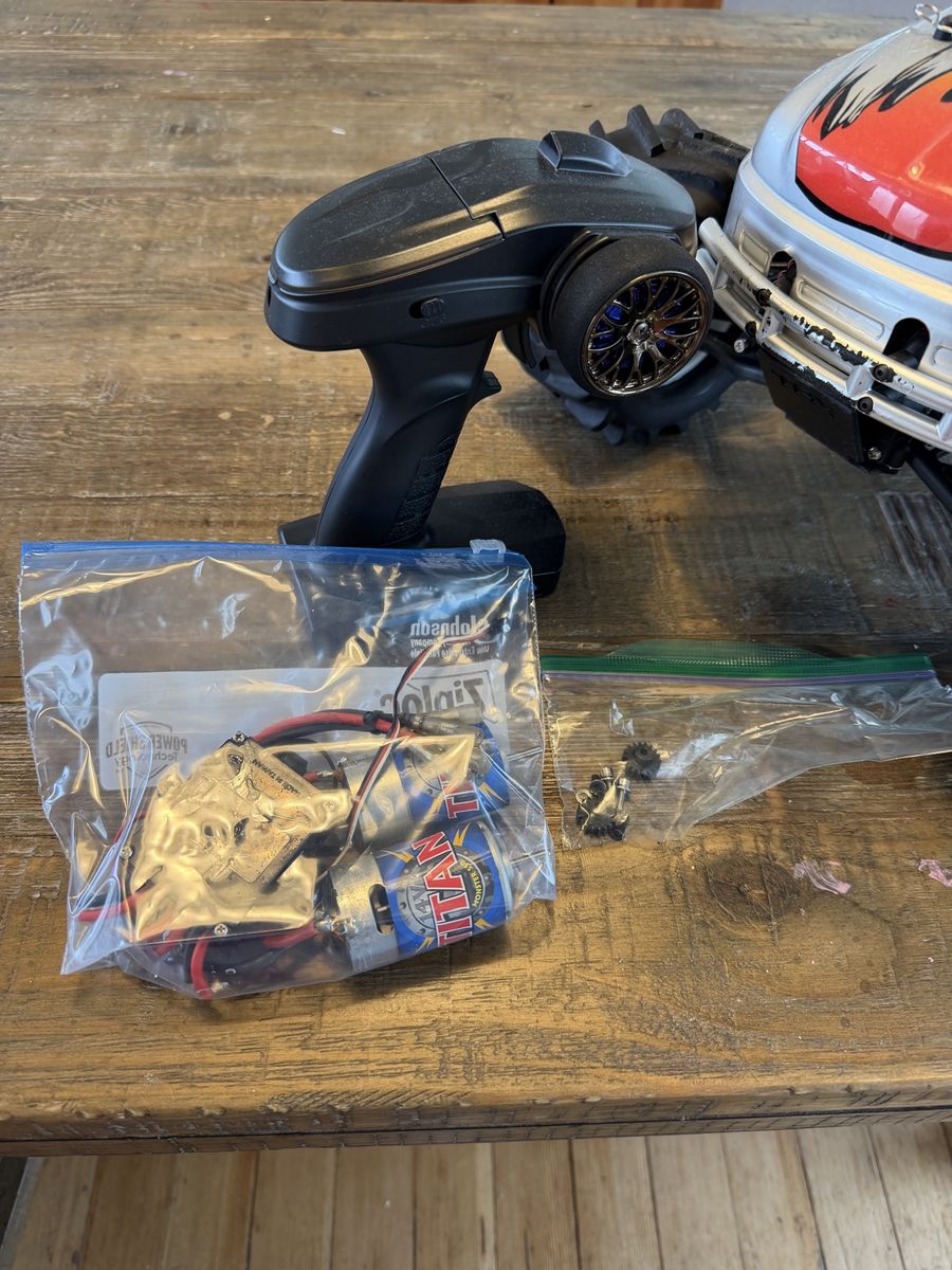 ZelleI have an Emaxx that I’m looking to send to a new home. I got it having plans to upgrade it but got other bills to pay first. It has all the electronics. The ESC does need connectors to run but other than that everything is there. I also have 2 spare wheels/tires to go with it. Asking $200 obo. No trades
