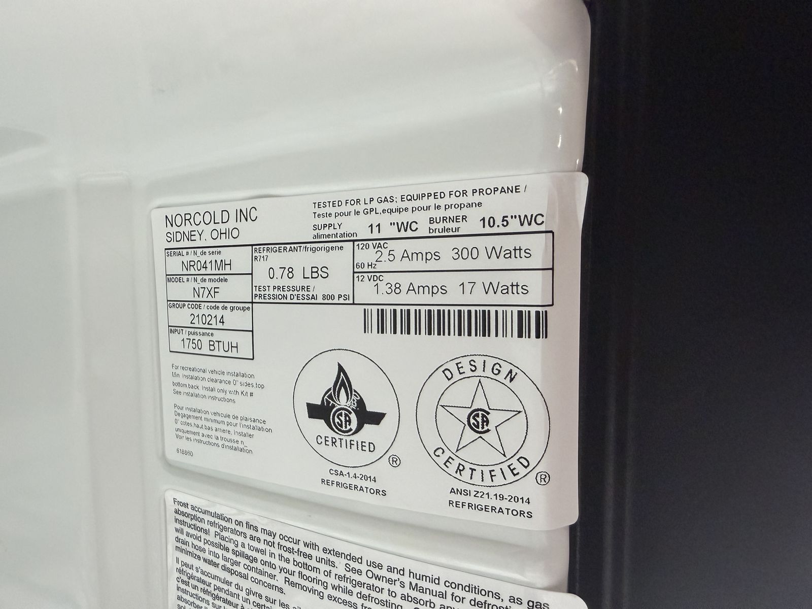 Features: The Norcold Polar Series N7X Refrigerator is a modern RV refrigerator that's designed with an upgraded appearance and enhanced, modern styling. * Modern refrigerator with an upgraded appearance and enhanced, modern styling * Hidden hinges and recessed door handles for a more streamlined look * Two-way refrigerator operates on both AC and LP gas * Five adjustable shelves, clear door bins, and dual clear crisper drawers * Touch control – no more buttons and switches * The eye-level control panel is easy to see and operate * Adjustable thermostat and mode select * White powder-coated shelves with front risers * Automatic frost limiting * Door hinges are on the left and the door swings to the left * Reversible door hinges * Fan Operates on AC and LP gas Overall Capacity: 7 cu.ft. Icemaker: Not included Hinges: Right-hand Net Weight: 112 lbs. Amp Draw: 0.93A @ 12VDC / 2.5A @ 120VAC Cutout: 52-7/8"H x 23-1/2"W x 24"D