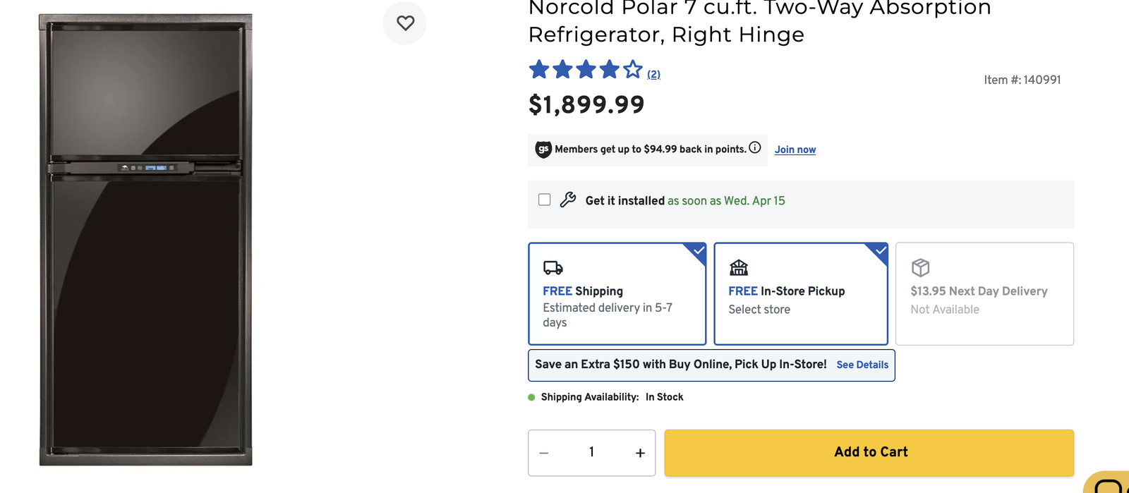 VenmoFor sale is a Norcold 7 Cu. Ft. Two-Way Absorption AC/LP Left-Hinge Black Refrigerator (N7X). This fridge has only been used for a few trips and is currently in a 2022 Grand Design Momentum trailer. We are pulling it out as we are redoing every part of the electrical system and going to a solar/lithium setup.