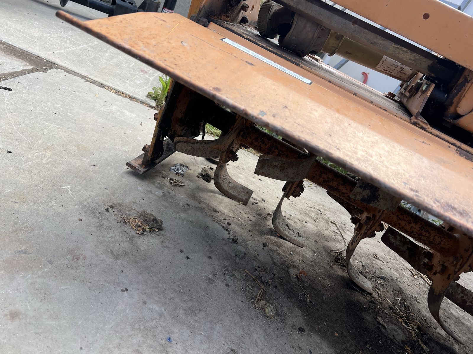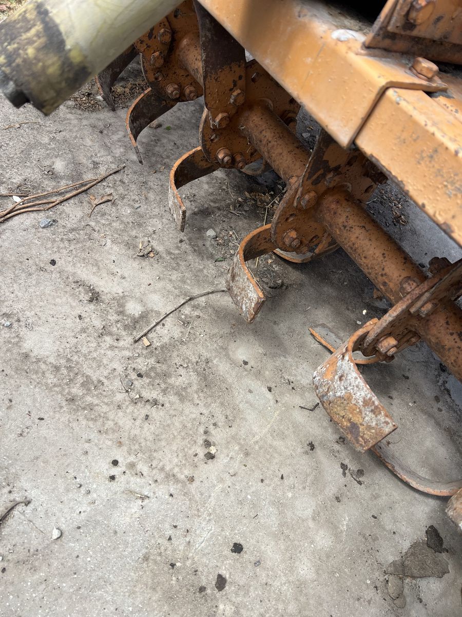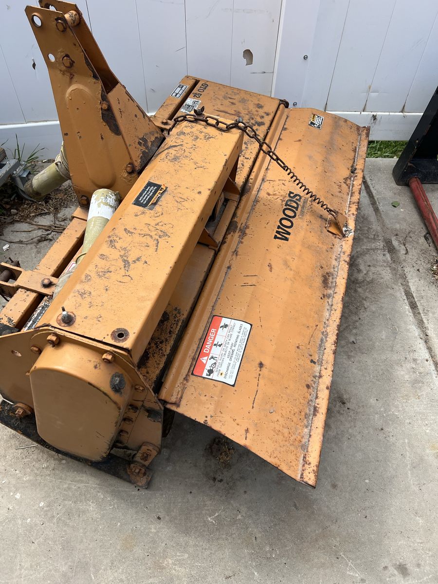 This is a Woods brand tiller. It has sun fading from being stored outside but it is in fine mechanical condition with very little use as can be seen by the lack of wear on the tiller tines in the photos.