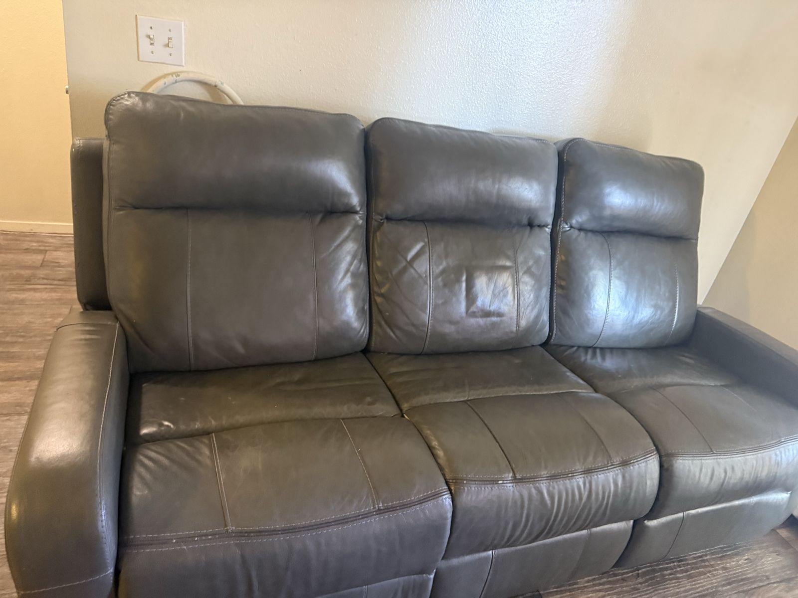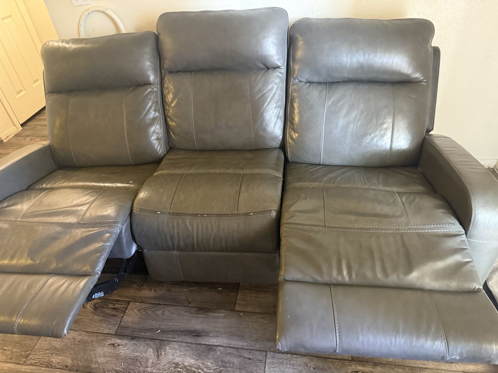 CashAppGrey reclining sofa, it comes with usb adapter. No tears, in good shape ..asking 80$