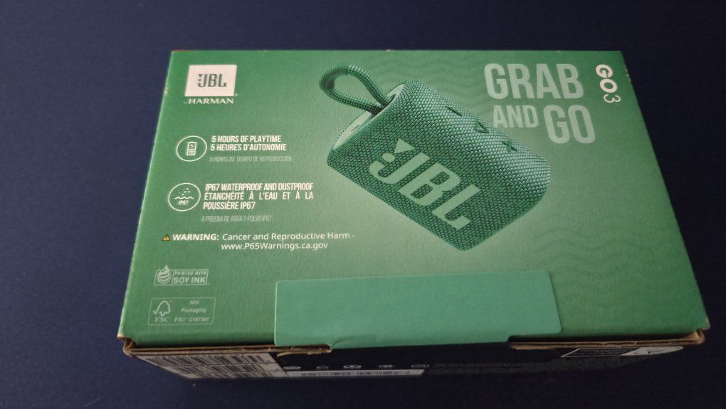 JBL Go 3 portable mini Bluetooth speaker features bold styling and rich JBL Pro Sound. With its new eye-catching edgy design, colorful fabrics and expressive details this a must-have speaker for your next outing. Your tunes will lift you up with big audio and punchy bass. It’s IP67 waterproof and dustproof so you can keep listening at the pool, park or in the shower. With its integrated loop, you can carry it anywhere. Go 3 comes in completely new shades and color combinations inspired by current street fashion. • JBL Go 3 portable mini Bluetooth speaker • Rich JBL Original Pro Sound • Ultra-portable design • 5 hours of playtime • Wireless Bluetooth Streaming • IPX67 Waterproof and dustproof