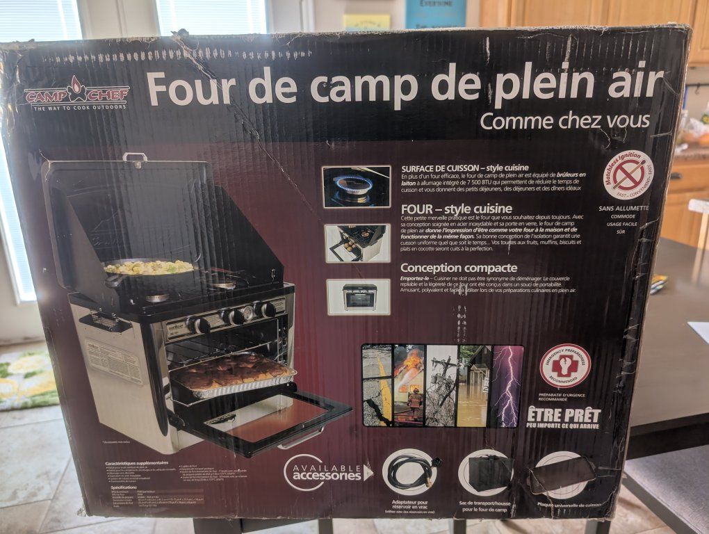 VenmoNever been opened, new in the box, outdoor camp oven by Camp Chef. Stainless steel design with glass door, its convenient and lightweight design is insulated to ensure consistent cooking no matter the weather. 2 oven racks. The oven can run for 7 hrs on a 1 lb. Disposable propane bottle at 350°. Includes a Kitchen style cook top with two 7,500 BTU matchless ignition Brass burners. Great for camping, hunting, tailgating, or just emergency preparedness.