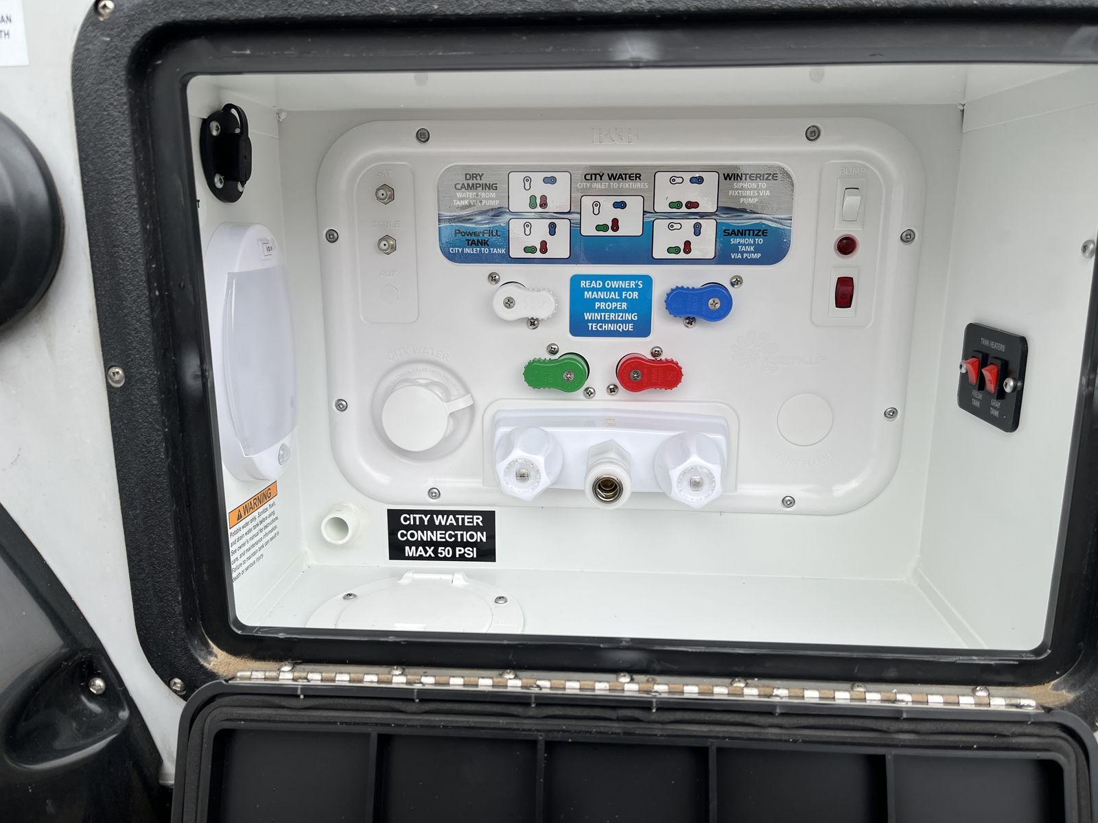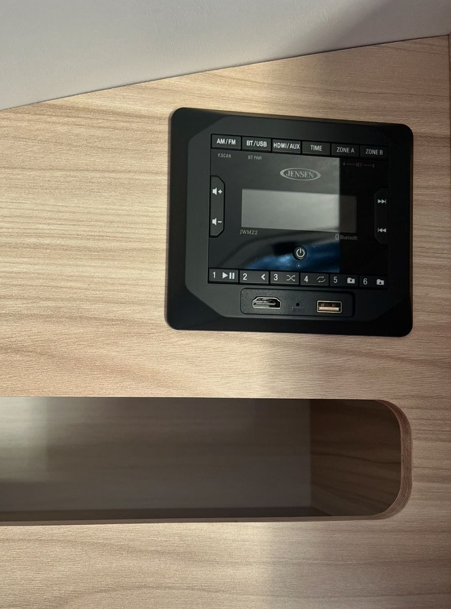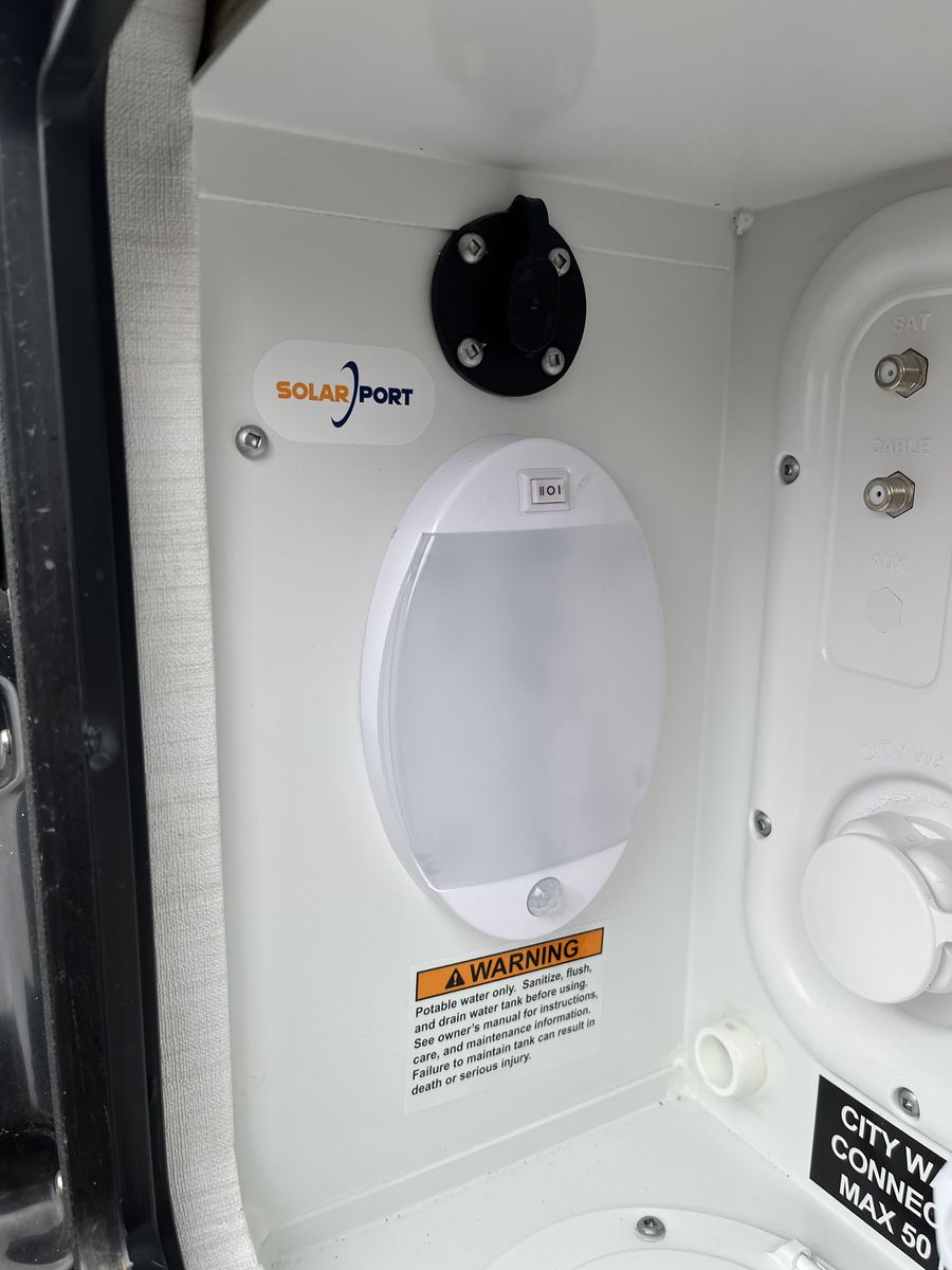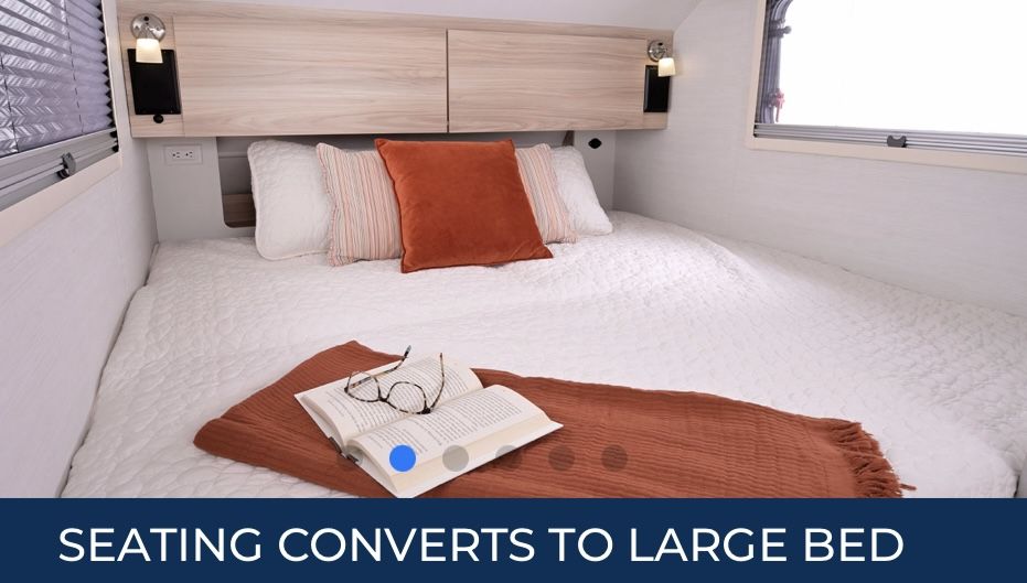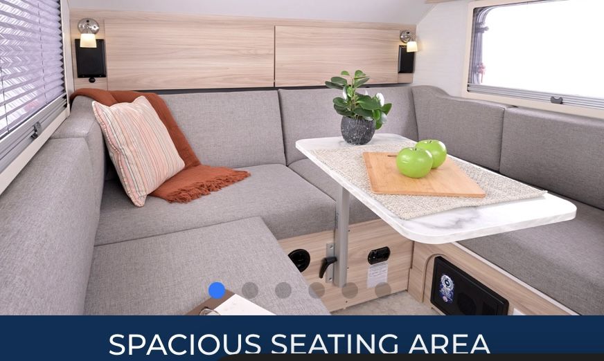 Interior ComfortsPremium soft-close Amish-crafted cabinetry Alde heating and hot water system for year-round comfort Central A/C and power roof fan for climate control U-shaped dinette converts into a roomy sleeping area Bluetooth media center with 19” TV Side porthole windows and panoramic front window for bright, open views