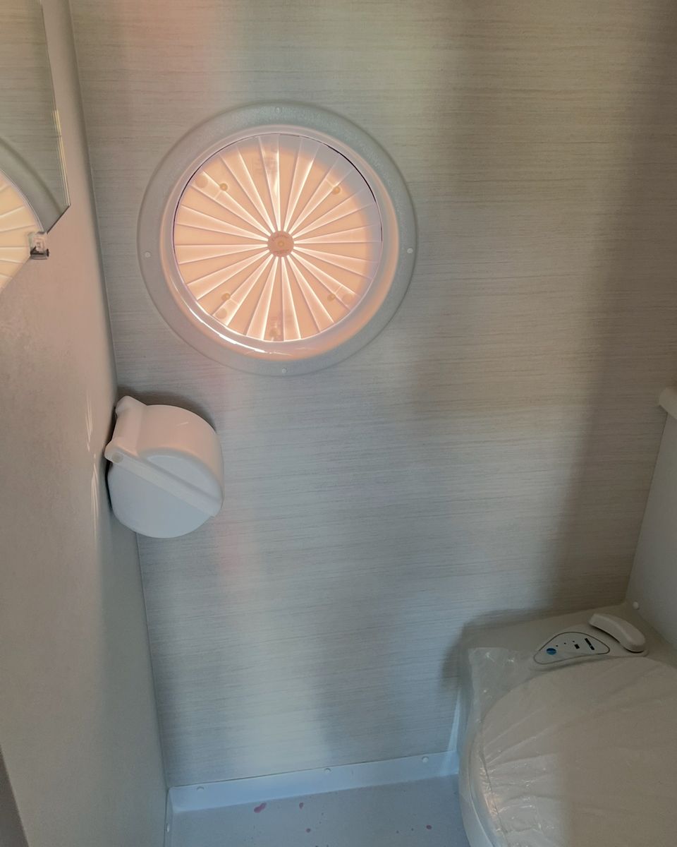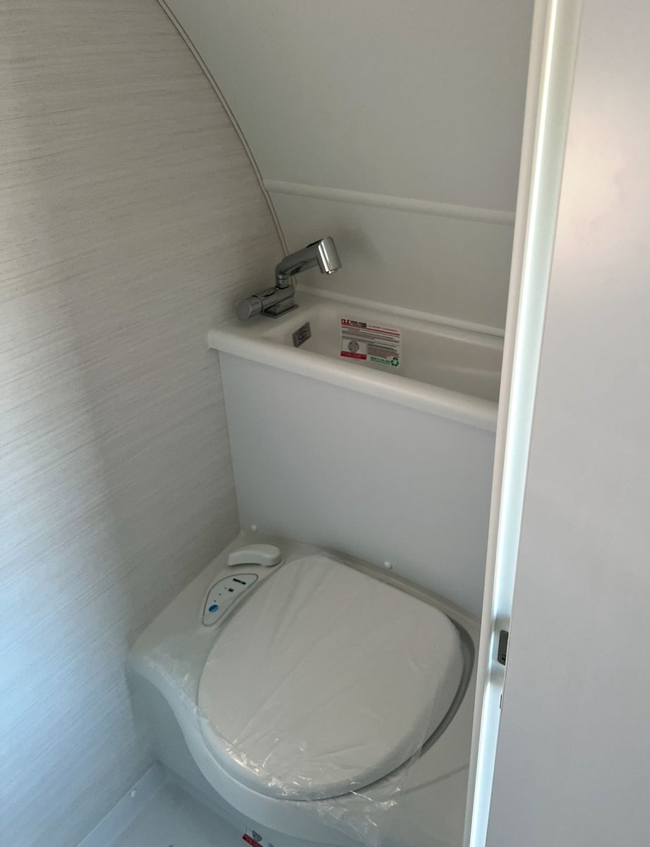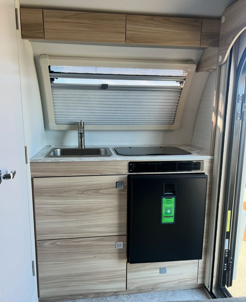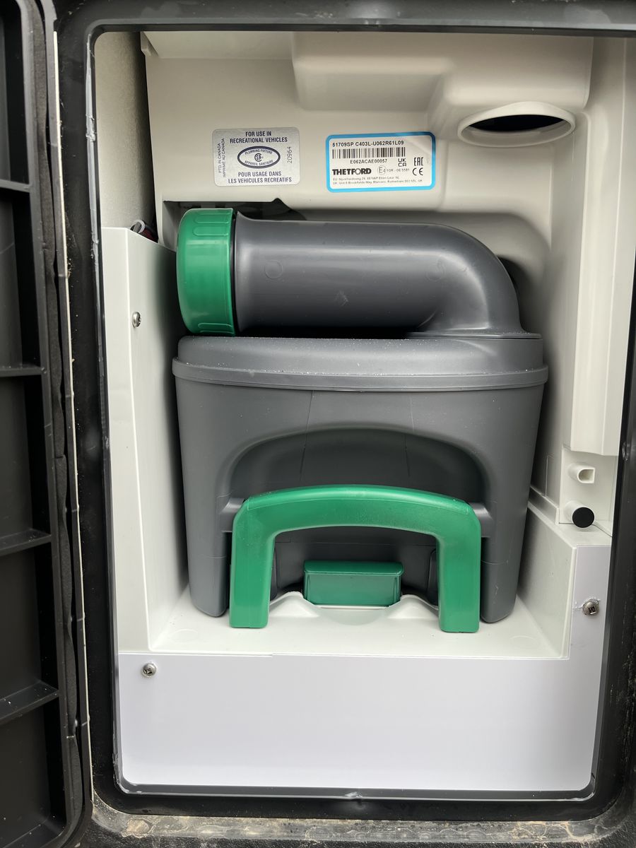 Wet bath with built-in sink and cassette toilet External shower for campsite convenience