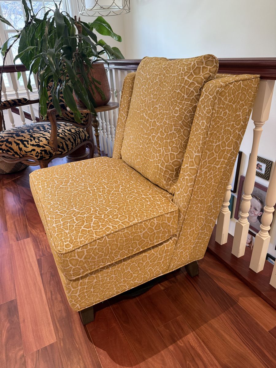 VenmoYellow & White "leopard" print chair. Barely used. Super comfy!