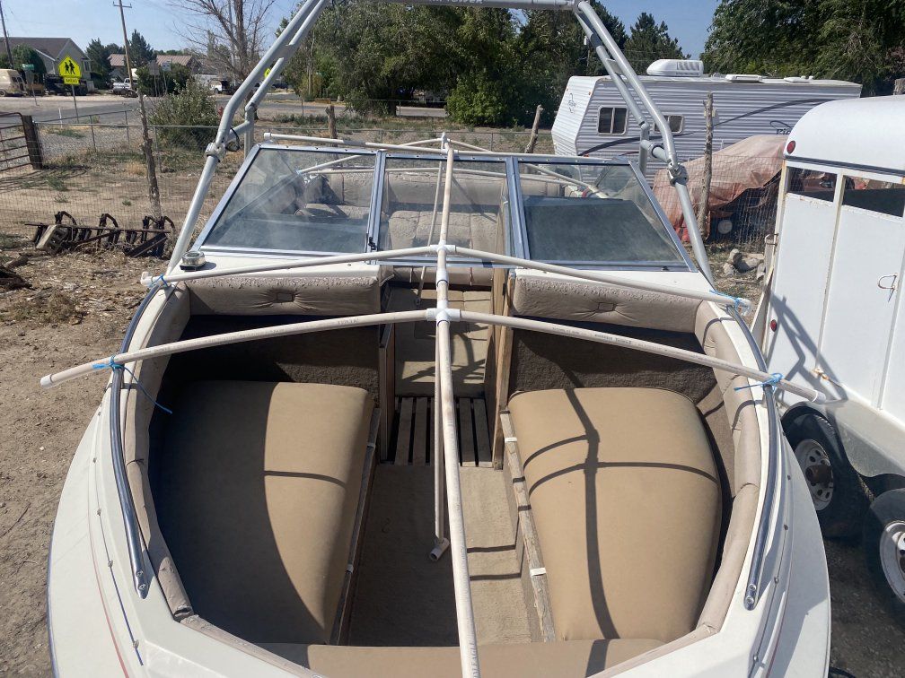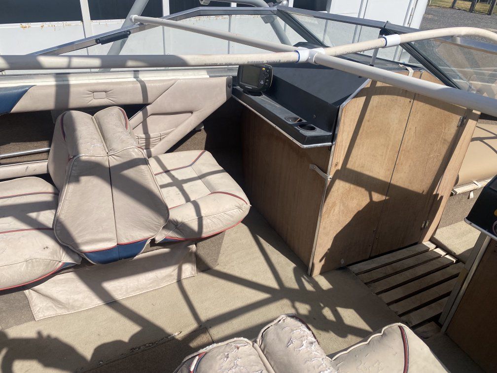 Motor with low hours OEM outdrive recently rebuilt Runs strong with no issues Open bow layout – great for family and friends Remote trol included Ski tower for watersports Garmin fish finder installed Turnkey and ready for the water Call or text with any questions asking $2500 OBO