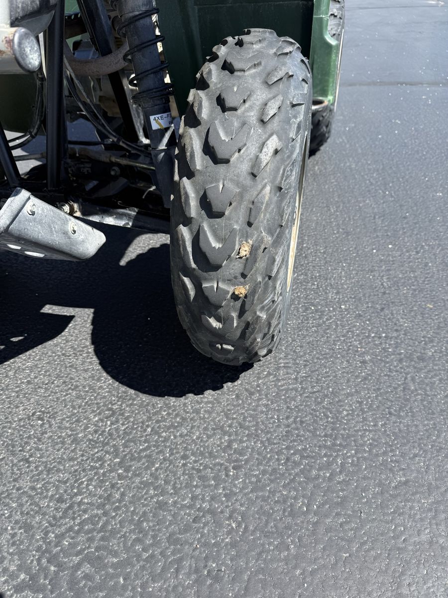 All 4 tires hold air. Front left tire has two plugs but holds air.