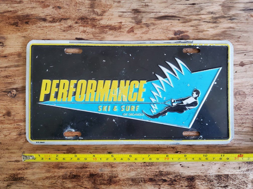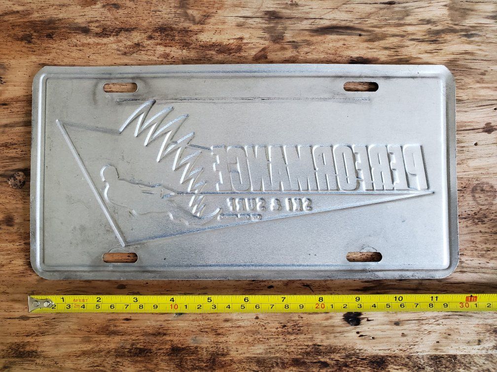 Vintage Waterskier License Plate. We bought this license plate new back in the 80's. All metal plate with no rust. This could be put on your vehicle or as decorative ski memorabilia from the 1980's. Measures 11 3/4" x 6" Can meet in Ogden/SLC Cash only. $25