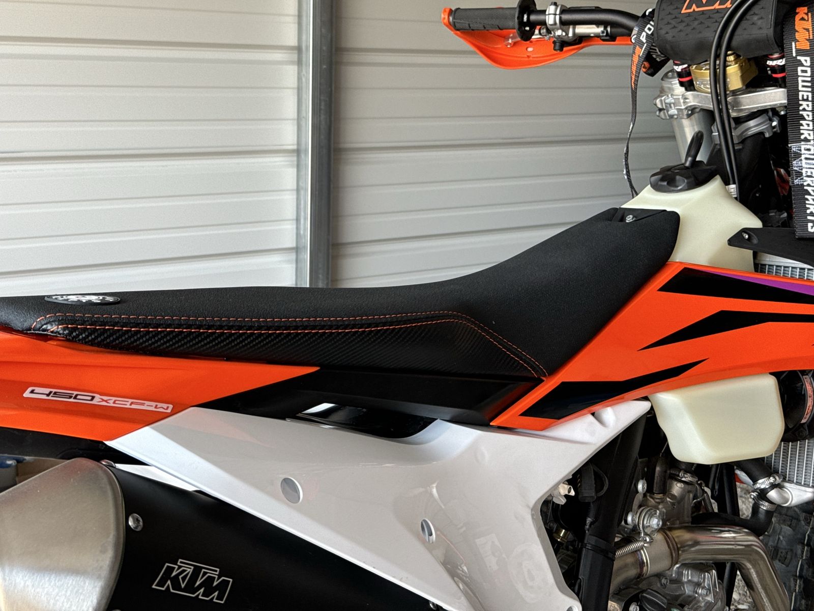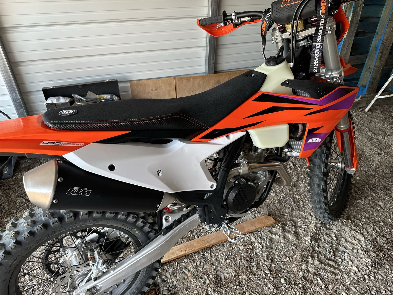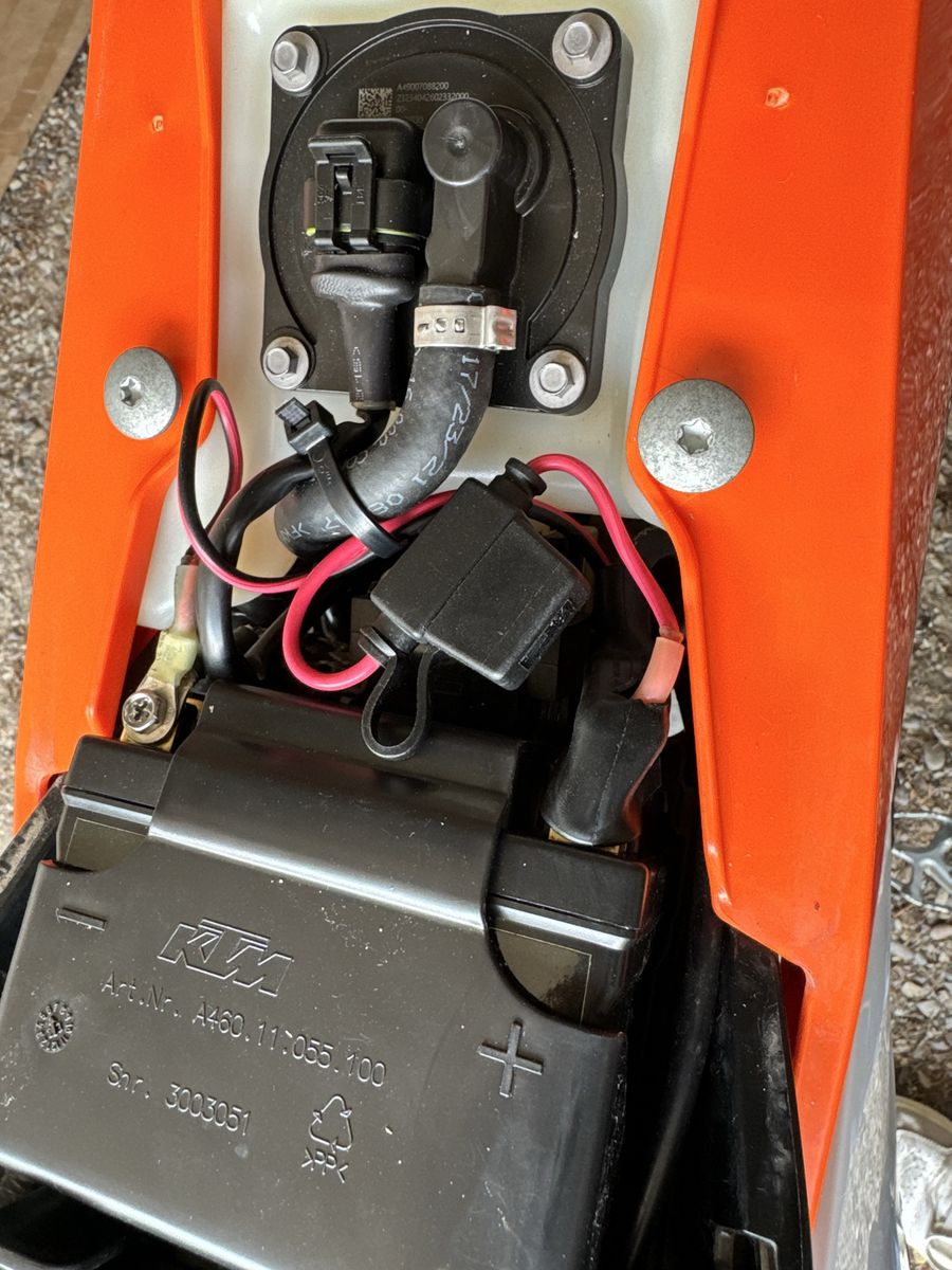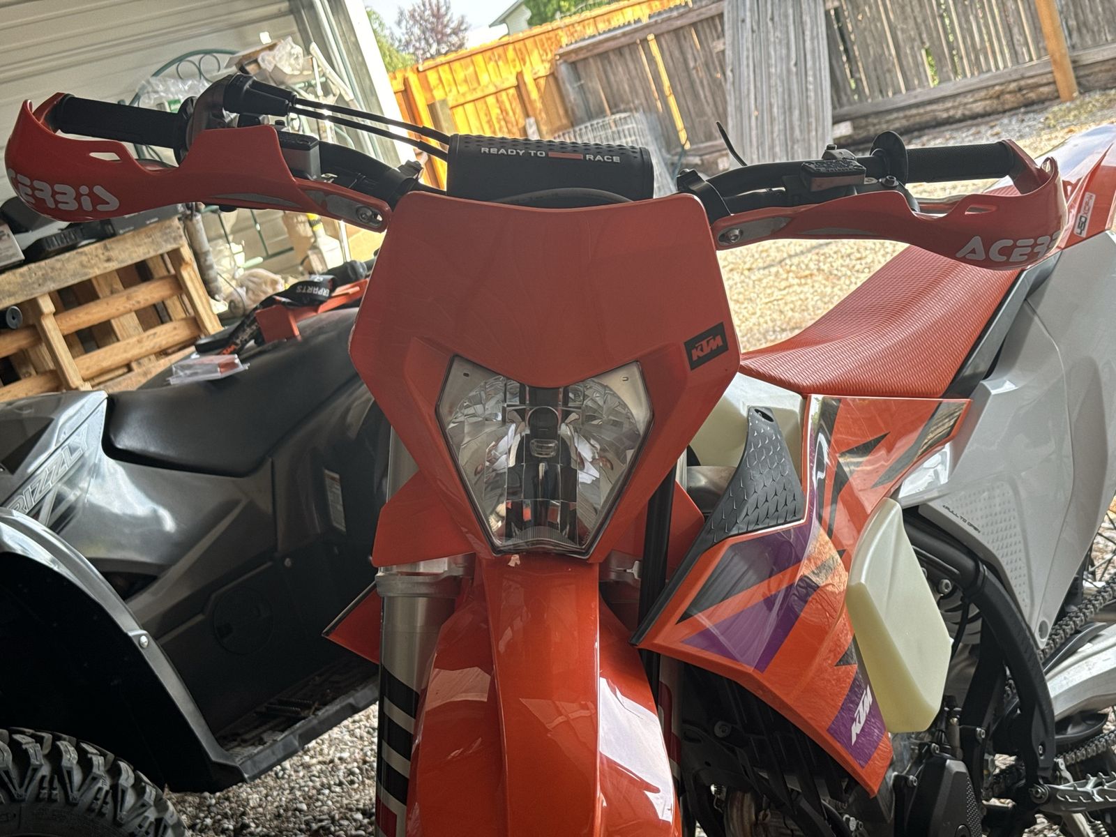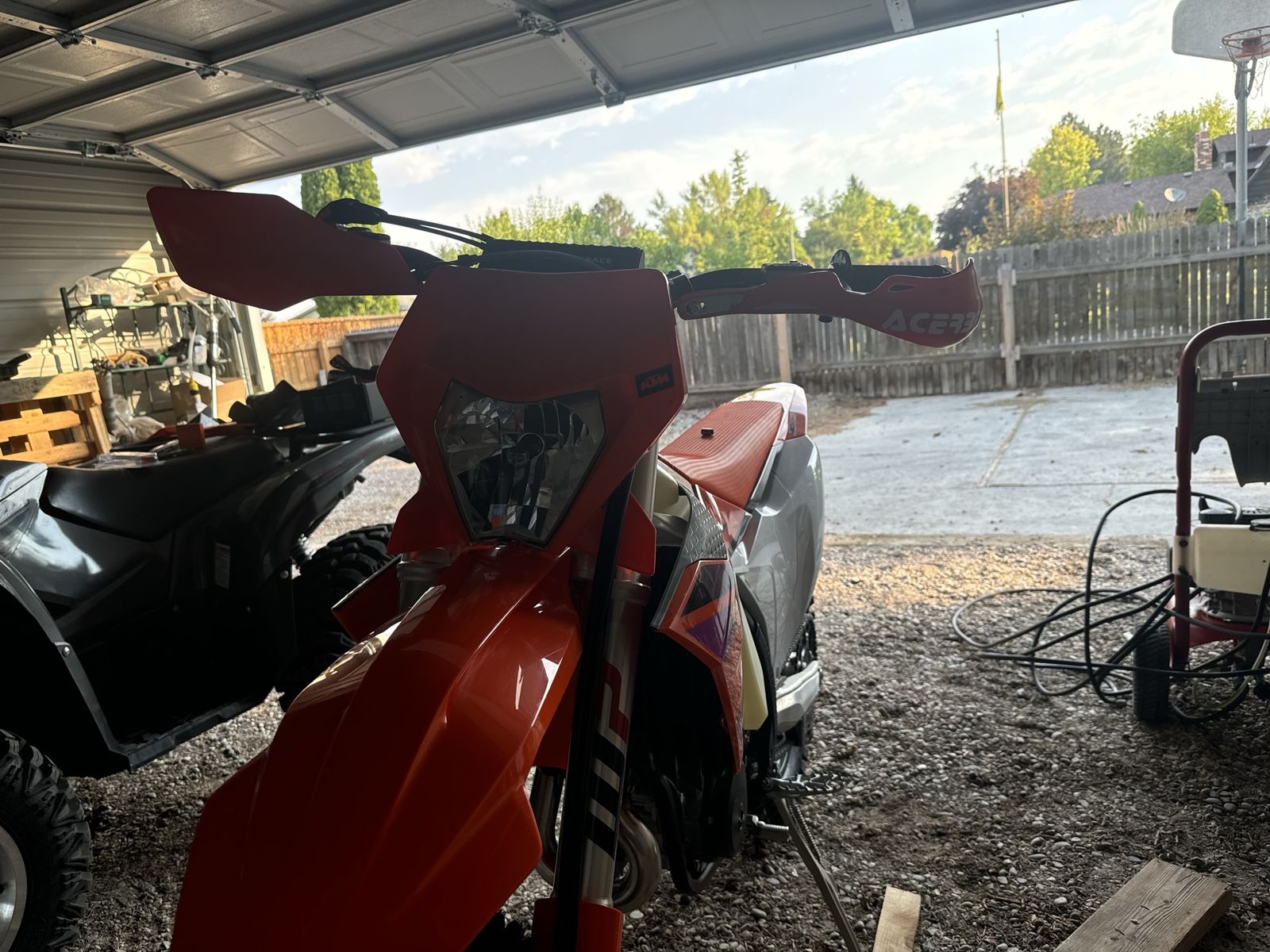 Brand new only has 6 miles on it. Bought new can’t get away to ride looking after patent with dementia. . My loss your gain. Has Scott steering damper, accrebis hand guards OEM KTM combo switch and aftermarket seat concepts seat I replaced the white plastic with orange I have the original white and have the original seat as well. Stored inside title in hand 11999.99