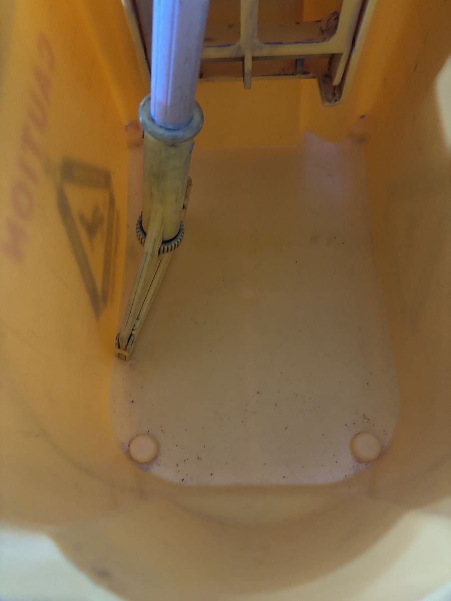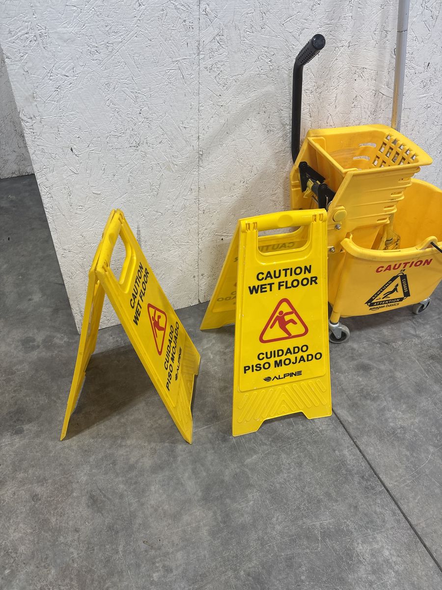 VenmoGreat condition, rolling mop bucket with wringer, handle for mop, 2 wet floor signs