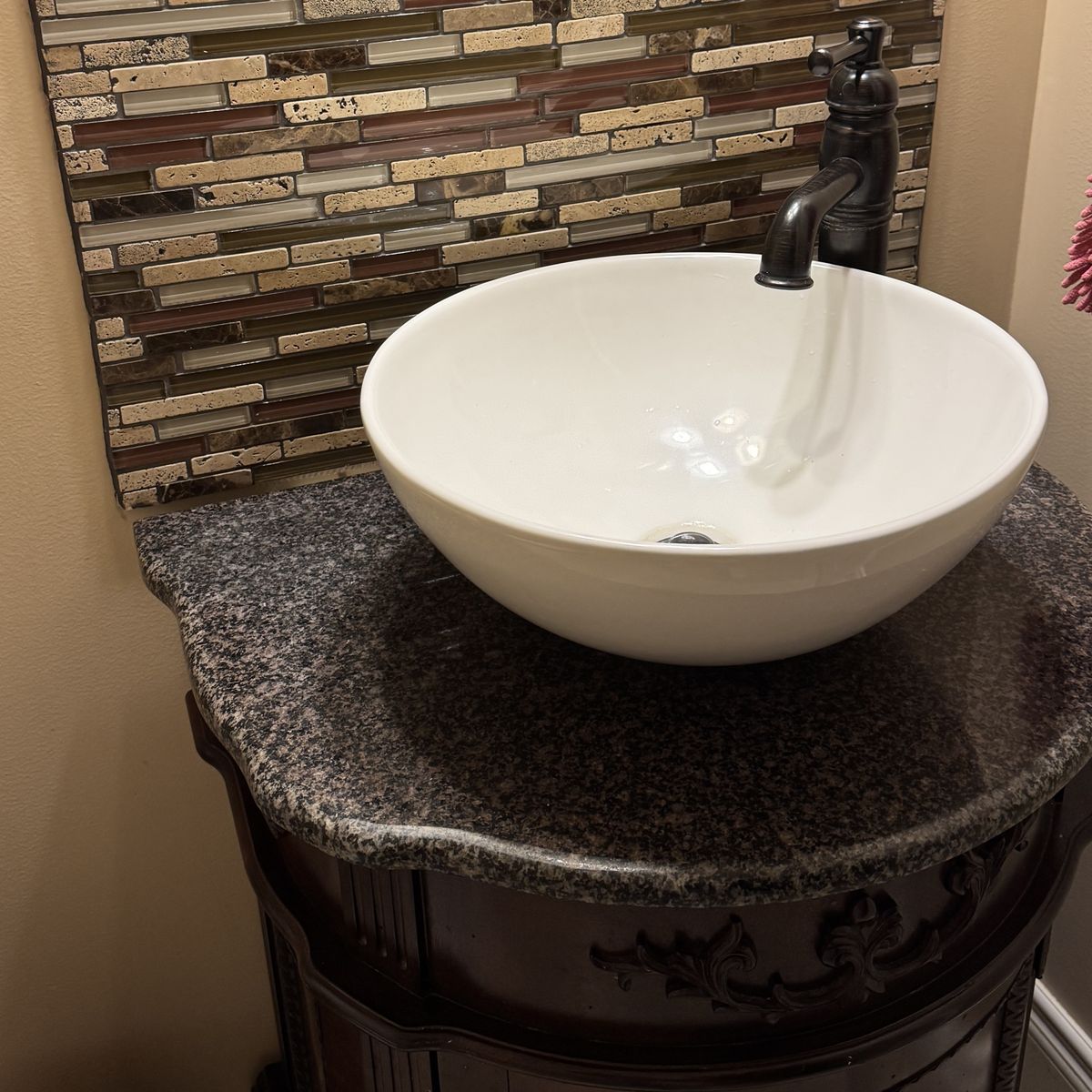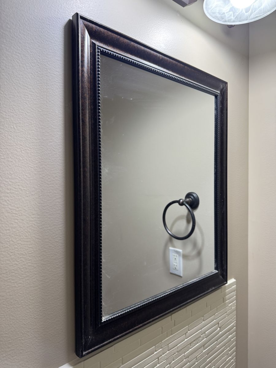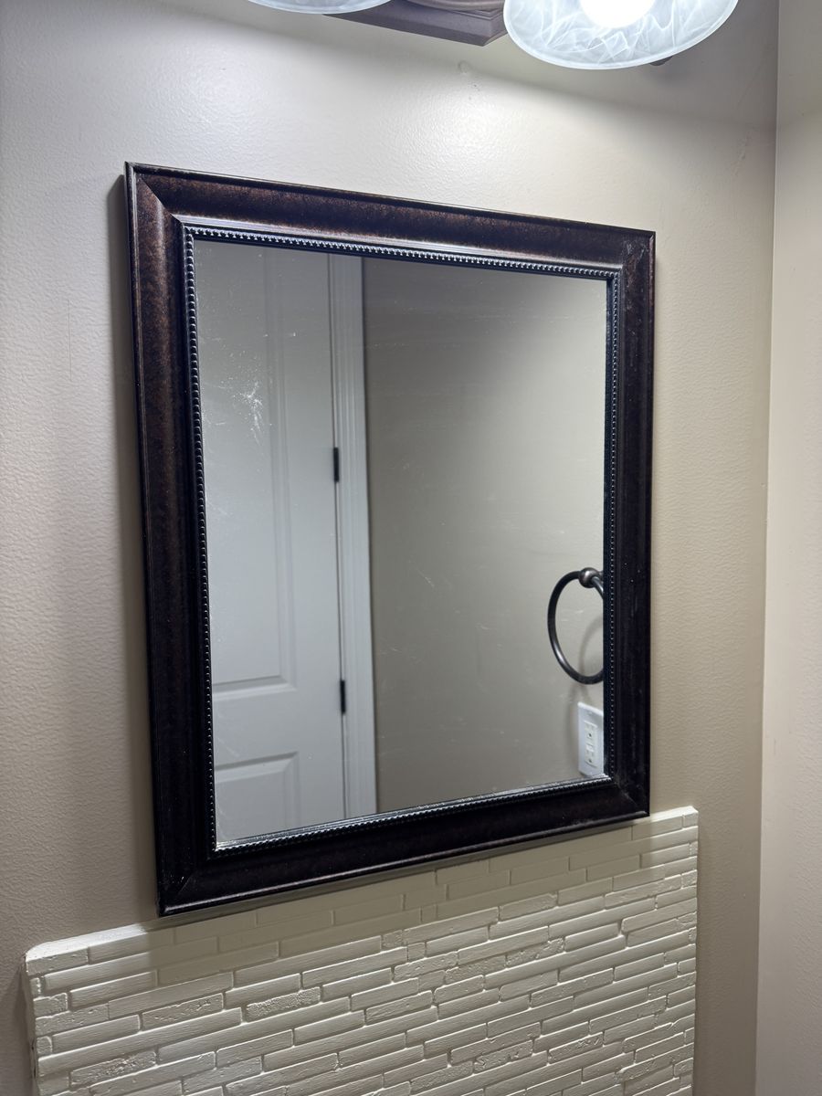 PayPalWith vessel sink and stone/granite counter 26in wide by 19in deep and 30in high. In great condition, just changing style It’s really solid too Mirror is 19x23in $185 obo