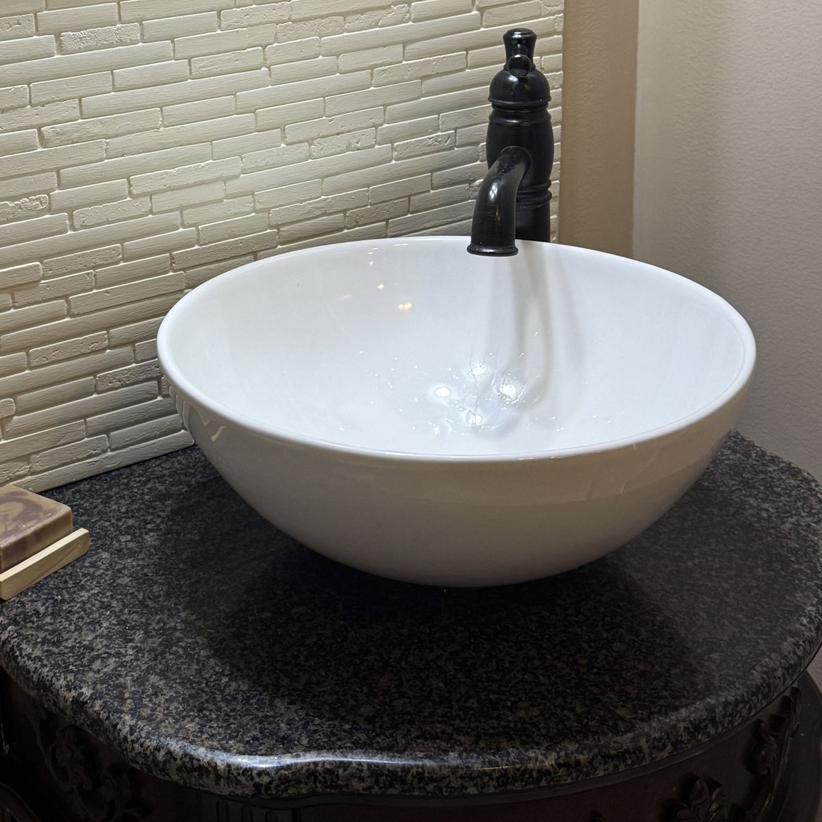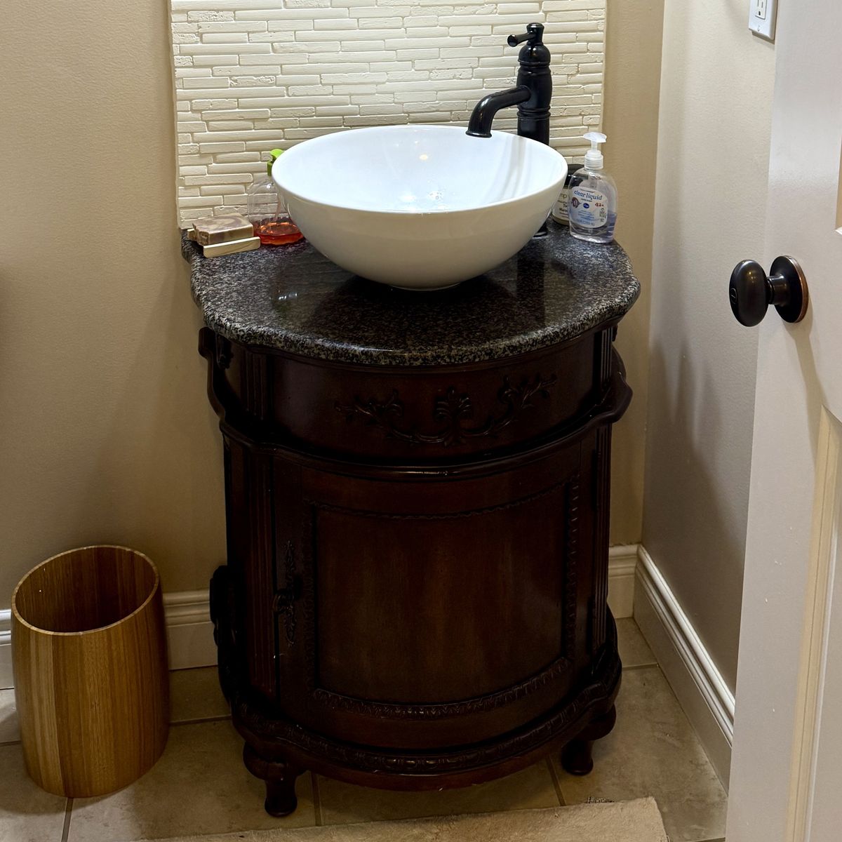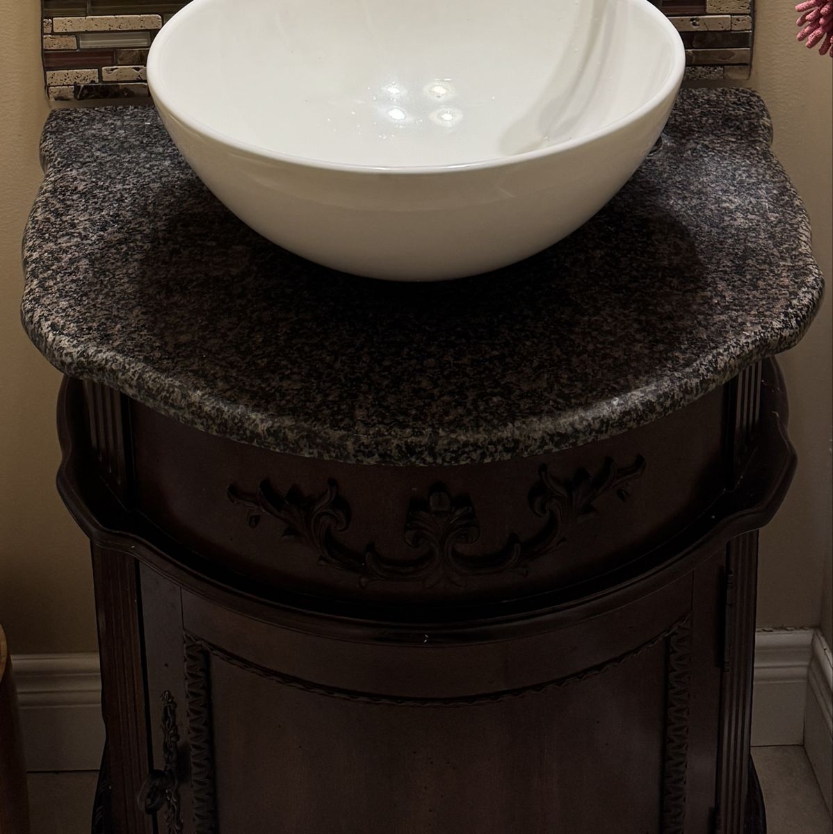 PayPalWith vessel sink and stone/granite counter 26in wide by 19in deep and 30in high. In great condition, just changing style It’s really solid too Mirror is 19x23in $185 obo