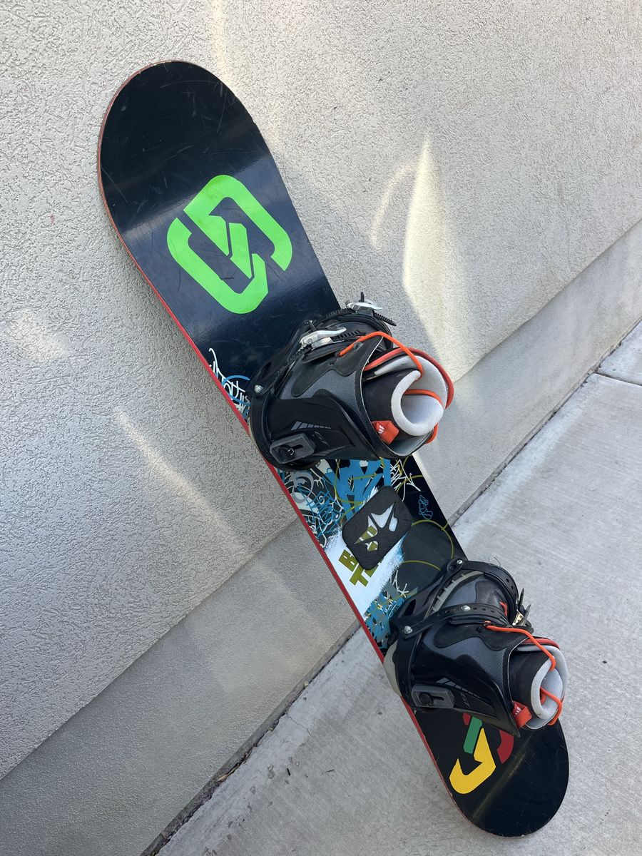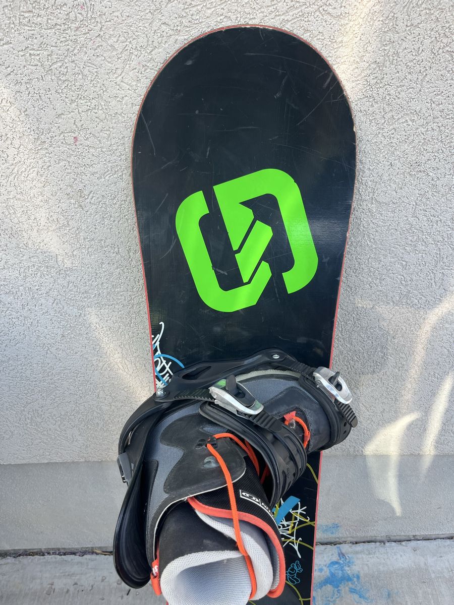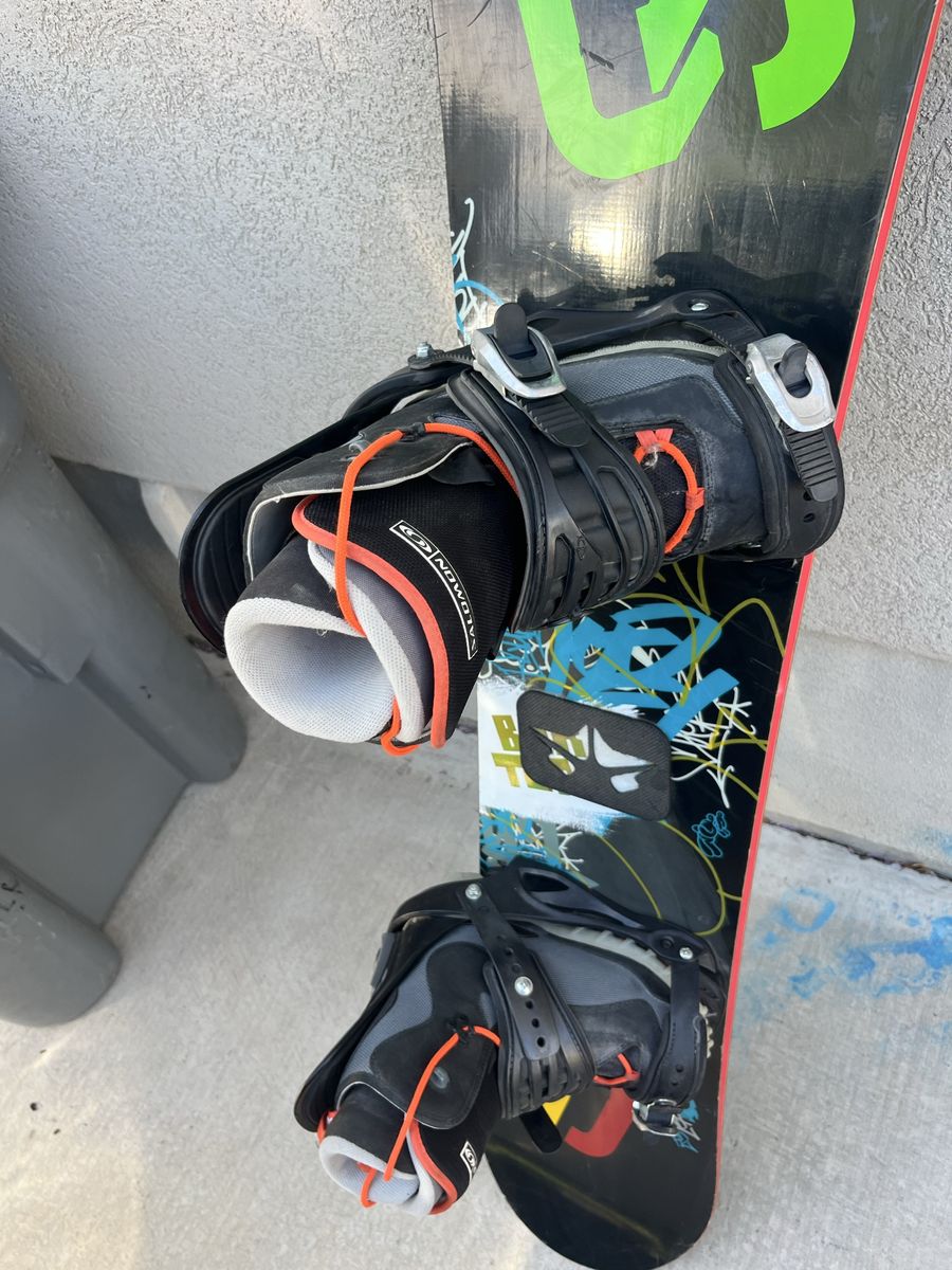 Burton 142 snowboard with Drake GT bindings and boots that are 6.5 male in size, Bindings go up to size 9
