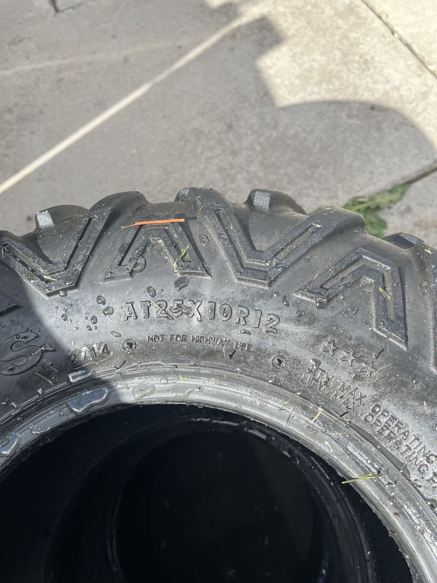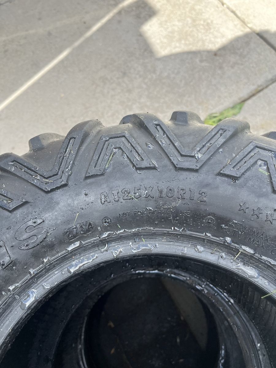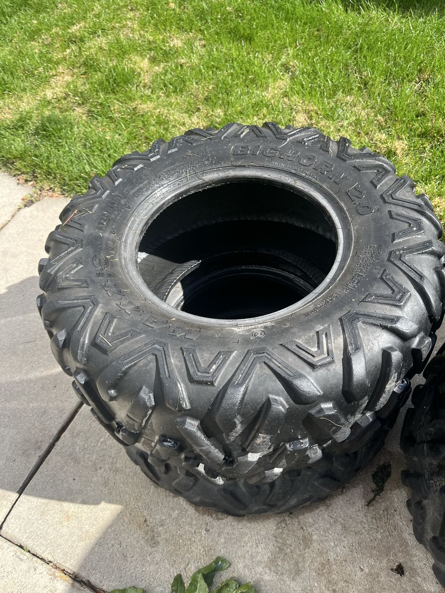 VenmoA complete set of ATV tires for sale. 2 = 25x8x12 and 2= 25x10x12. They are Big Horn Maxxis tires. They have been great tires and still have good tread left. No cracks.