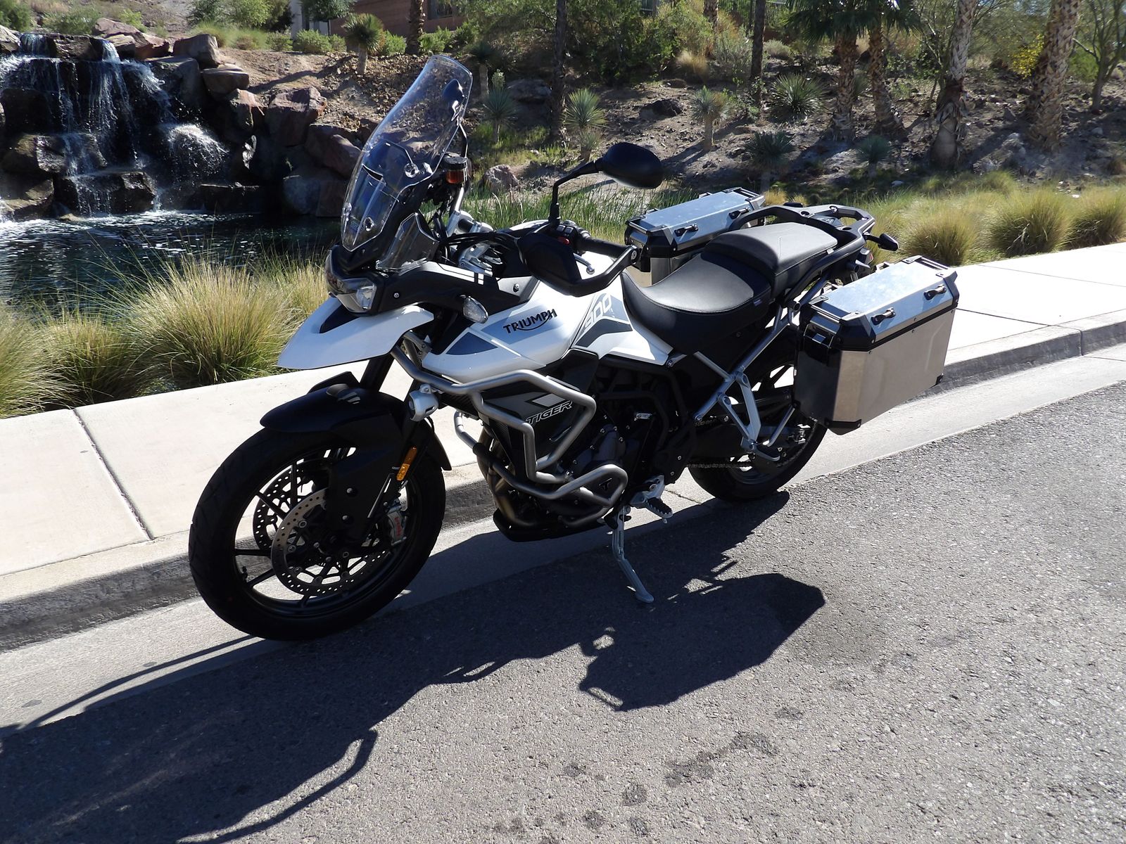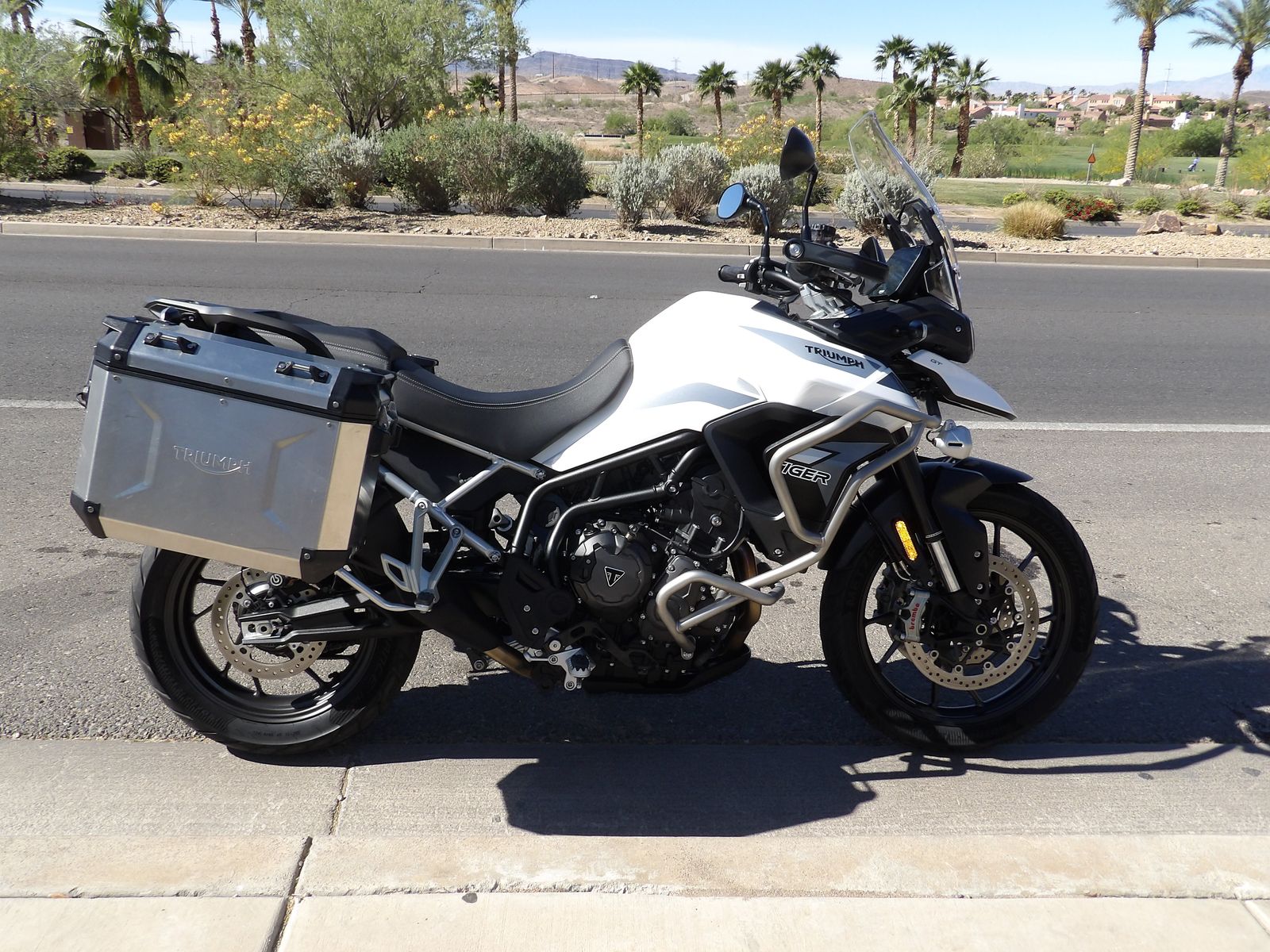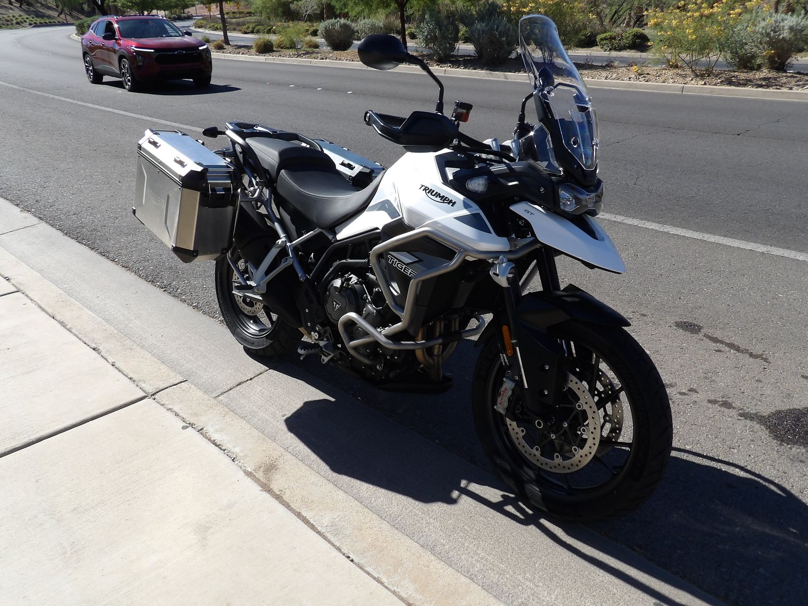 For sale by Owner is a 2022 Triumph Tiger GT 900 Low adventure bike. 7762 miles. Senior owned since day 1. Never seen dirt. Always garaged with a soft cover over it. Never been dropped or damaged in any way. As close to new as a used 4 year old bike with less than 8000 miles can get. Recent oil change with Castrol synthetic oil and a K&N oil filter. New battery installed. Removable Triumph panniers installed. Cruise control. Fog lights. Heated seat and grips. ABS.
