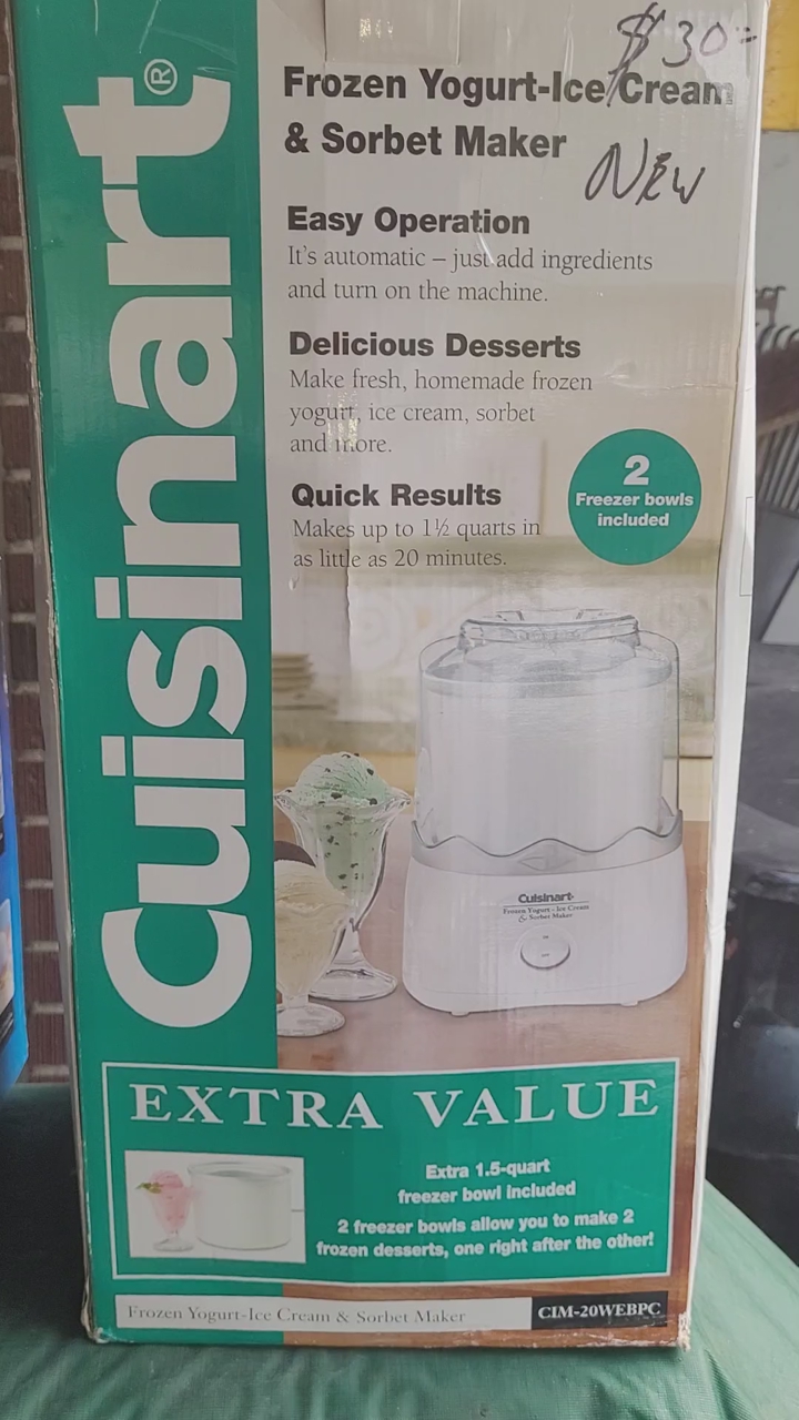new in the box Cuisinart frozen yogurt and ice cream and sorbet maker cash only as is