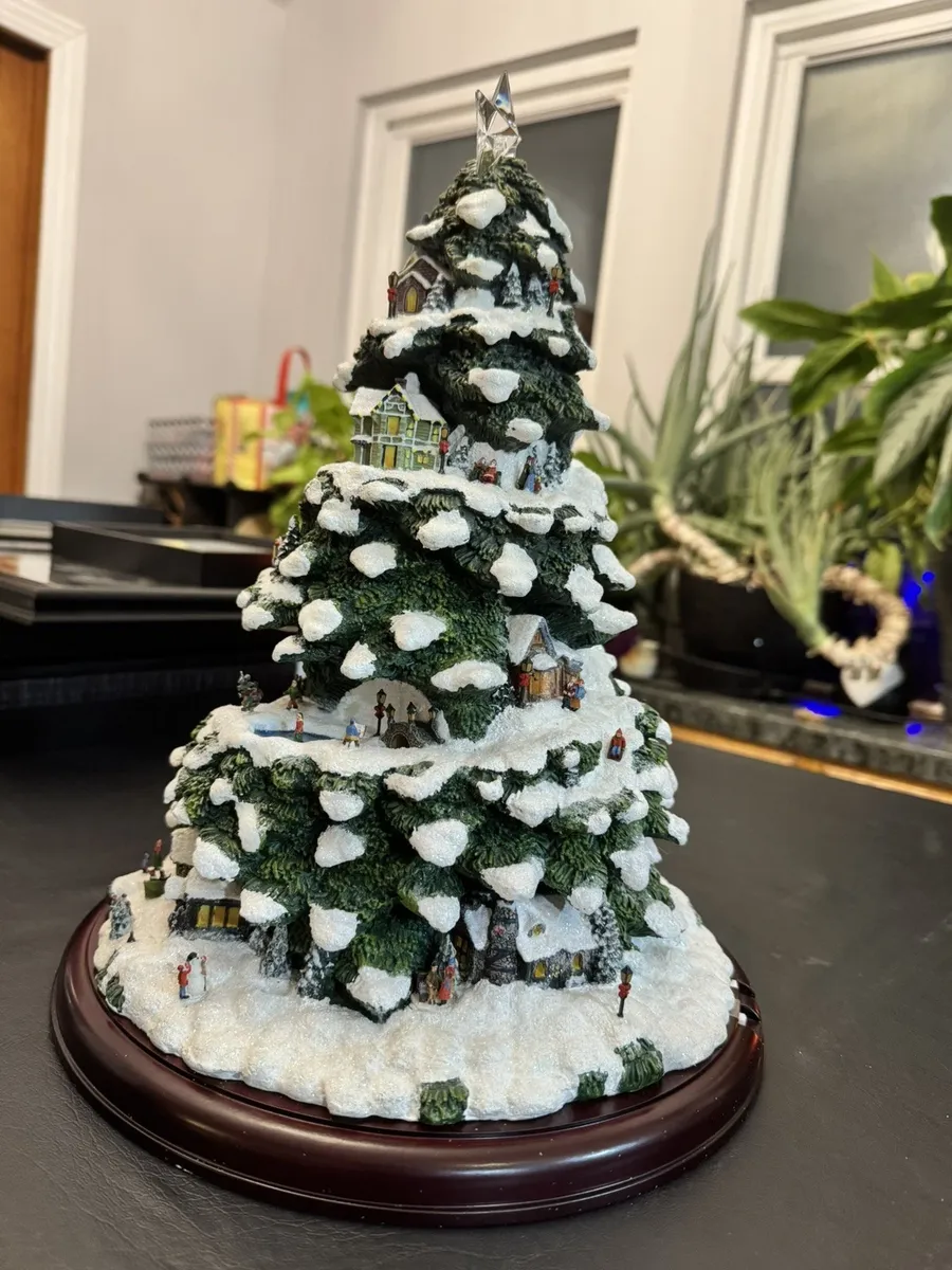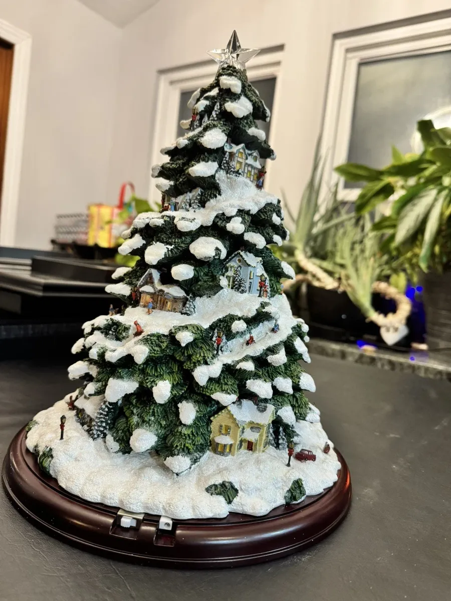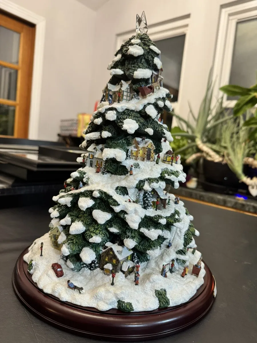 The Thomas Kinkade Village Christmas Tree 2004 Bradford Edition is a beautifully illuminated Christmas tree from the renowned artist's collection. Measures approximately 15"