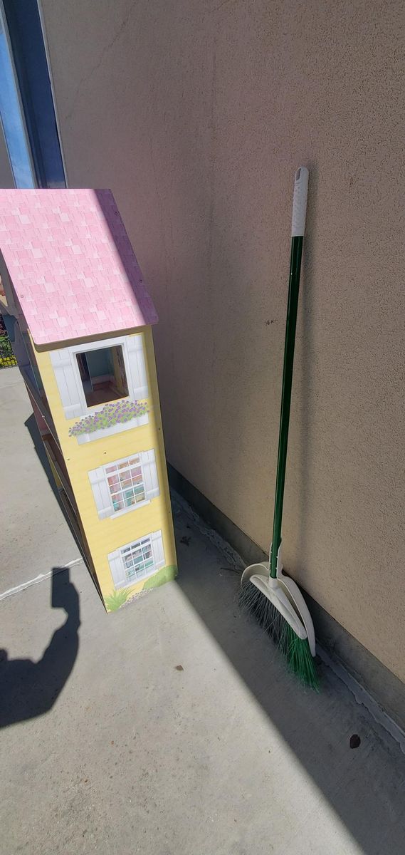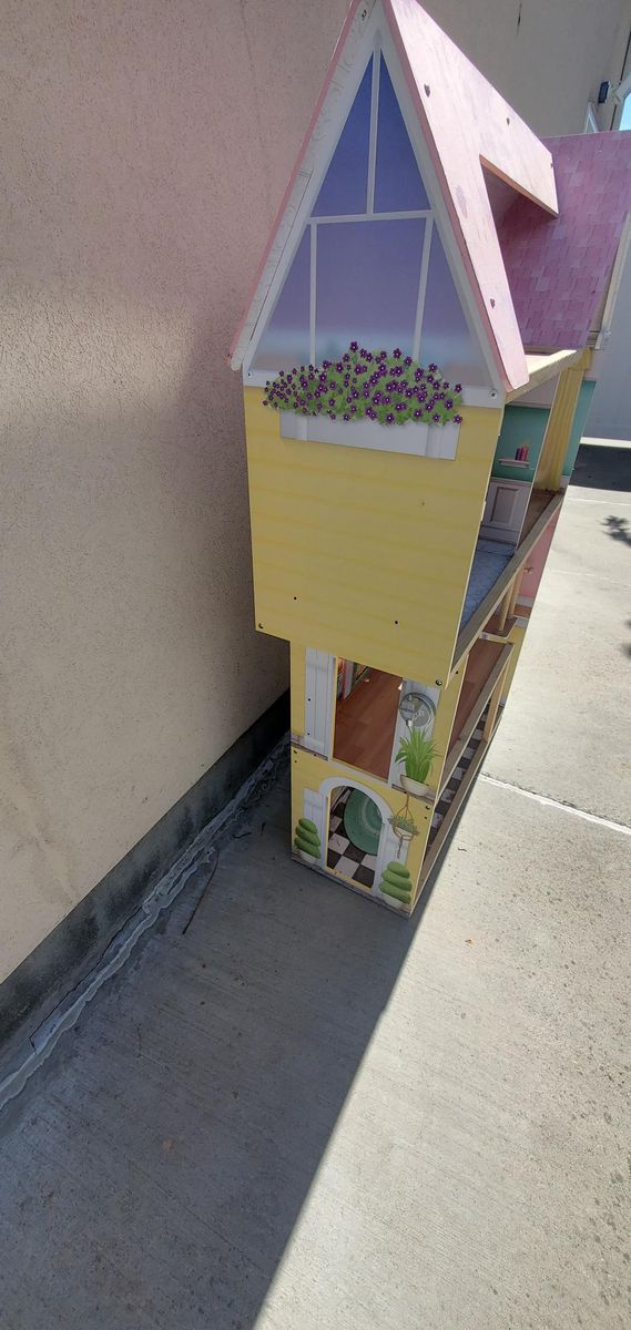 VenmoKidKraft Dollhouse. Still in good condition but may need a little cleaning since it has been in storage. Will measure if needed but took pictures next to a standard house broom and it is as tall as the broom at its highest peak. The house is all one piece.
