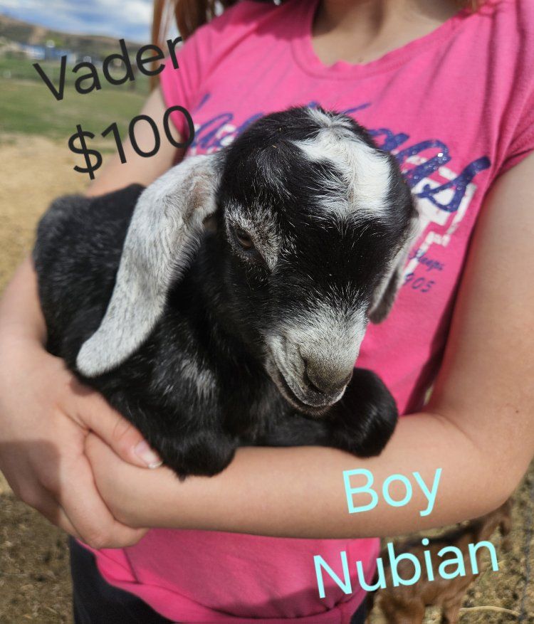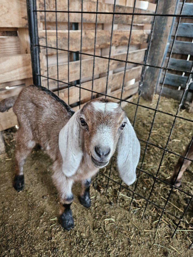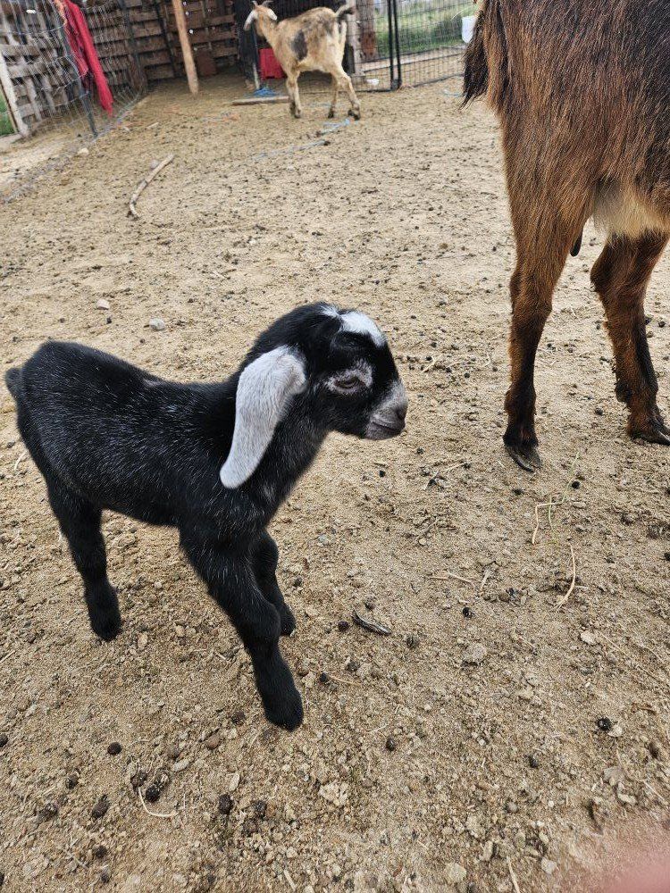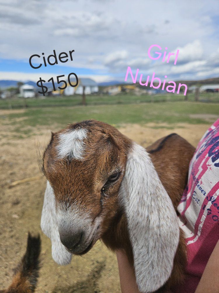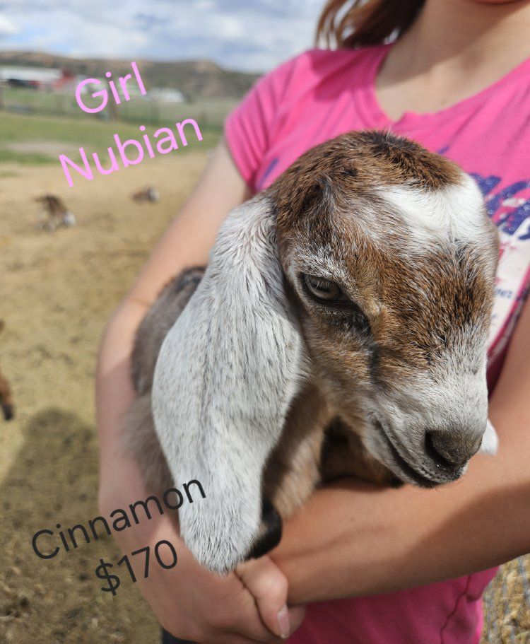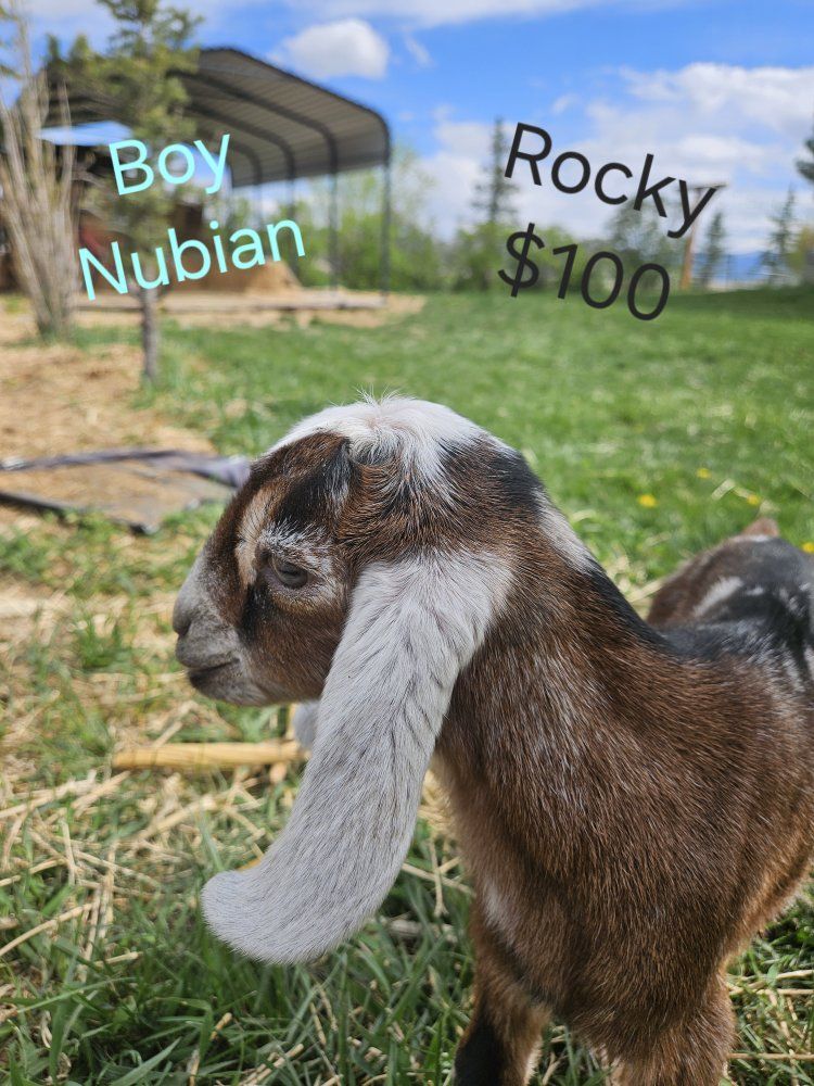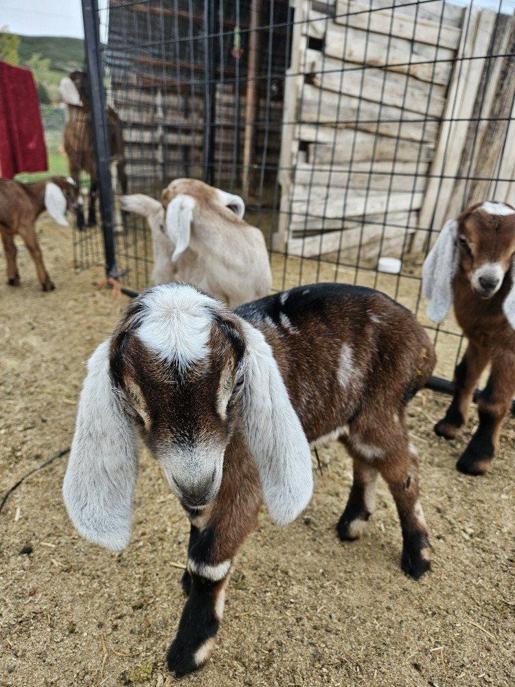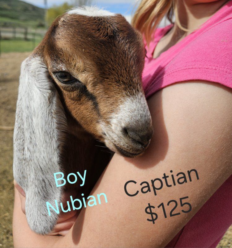 I have 9 baby goats for sale. Some are full Nubians, others are Nubian mixes. The price for each one is listed on the picture. The price varies depending on if they are pure bred and the quality of the milk lines. My highest priced babies come from Nubian moms with quality ribbon winning milk lines. They were all born the first week of April 2026.