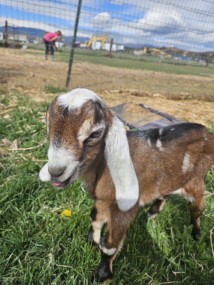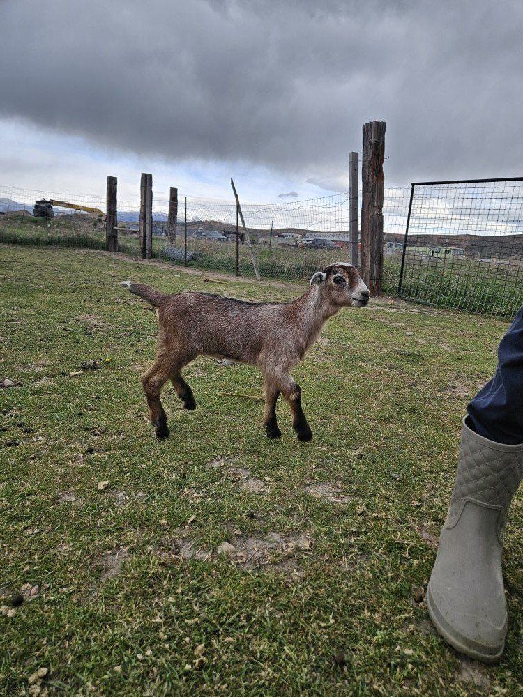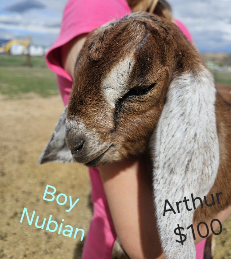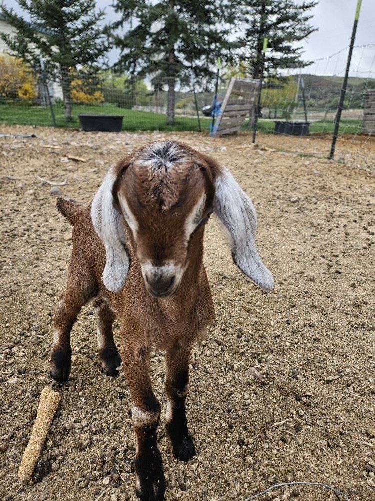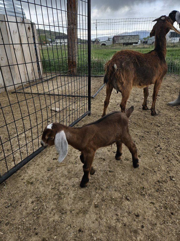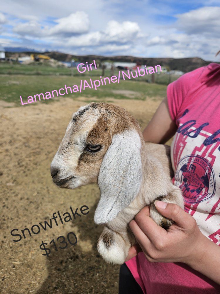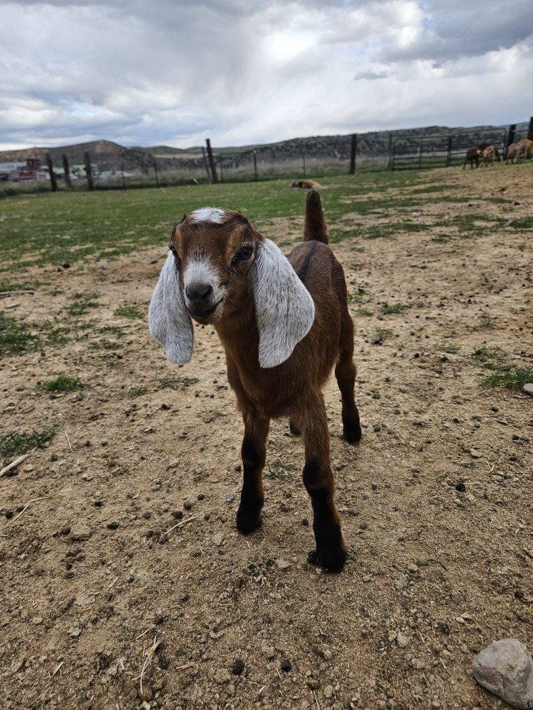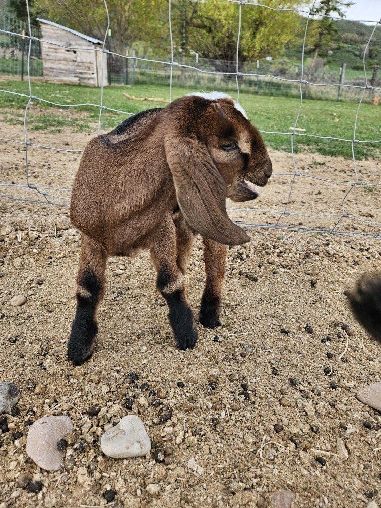 I have 9 baby goats for sale. Some are full Nubians, others are Nubian mixes. The price for each one is listed on the picture. The price varies depending on if they are pure bred and the quality of the milk lines. My highest priced babies come from Nubian moms with quality ribbon winning milk lines. They were all born the first week of April 2026.