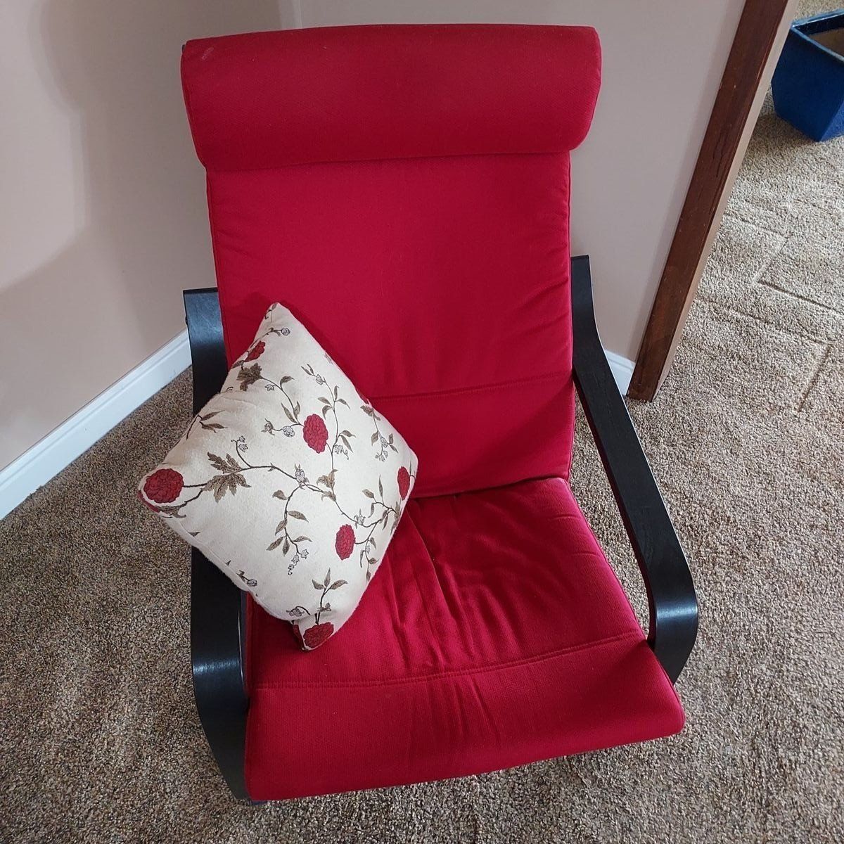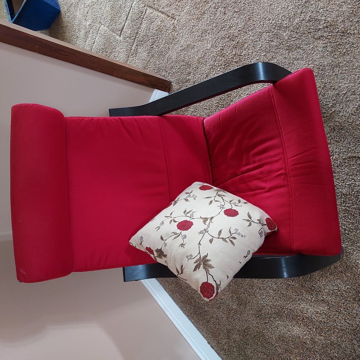 Beautiful red IKEA chair with matching pillow. Been used but still in pretty good condition. Pick up only. Asking $100 OBO