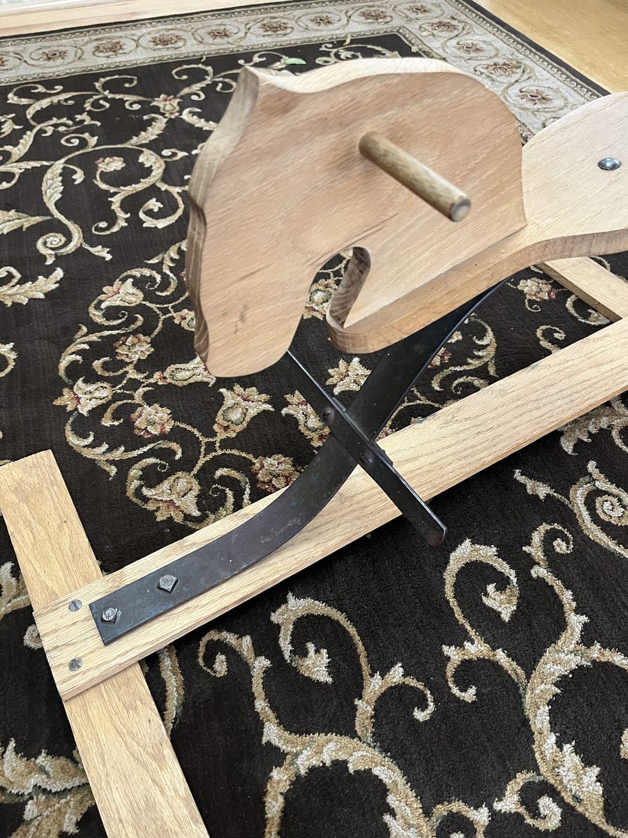VenmoThis was bought over 40 years ago in Jackson Hole, Wyo. We found it in the top of an old barn. Part of the oak was missing so we had a professional wood man replace it. My two children loved this. My only grandson loved it also, but alas he has grown up. There is no one in my family left to ride it and enjoy it. It is a one of a kind rocking horse toy. This measures 30 inches long x 16 3/4 inches wide x 16 1/4 inches tall. The foot bar is 4 3/4 inches off the ground. The hand holds are 15 inches off the ground and the seat is 12 inches off the ground. A real must see item. Price is firm.