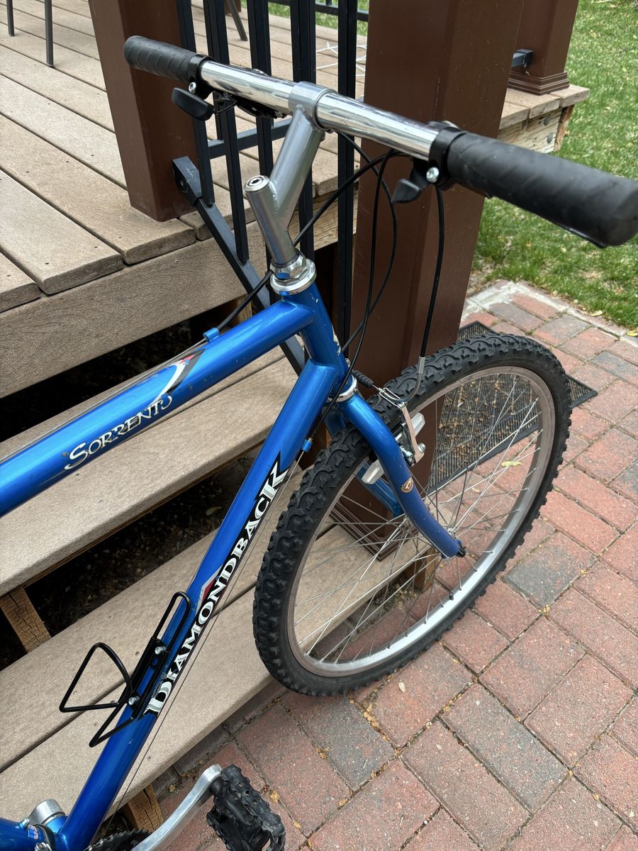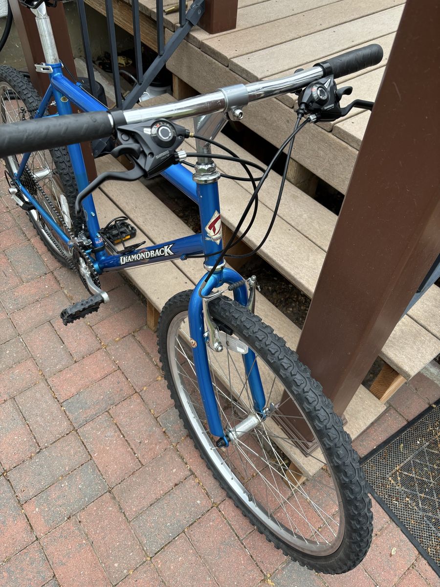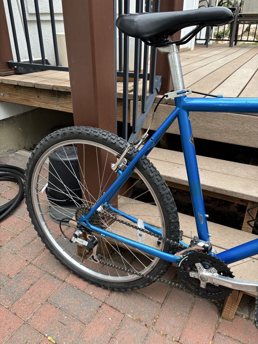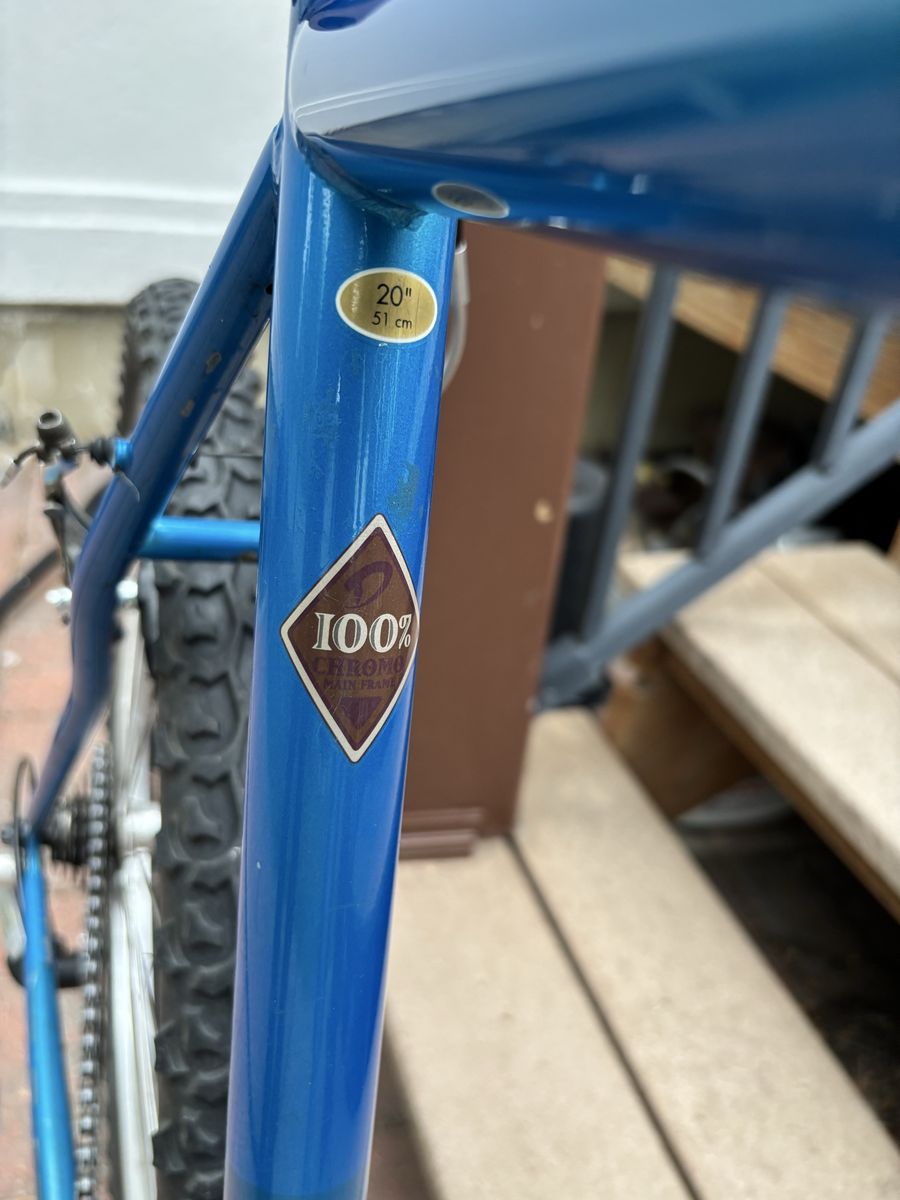 Large steel frame. New brake pads, seat, newer shifters, flat resistant tubes. Just tune up, everything works flawlessly.