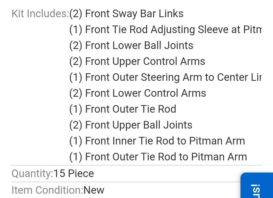 Venmo1999-2004 Jeep Grand Cherokee Front 15 Piece Steering & Suspension Kit