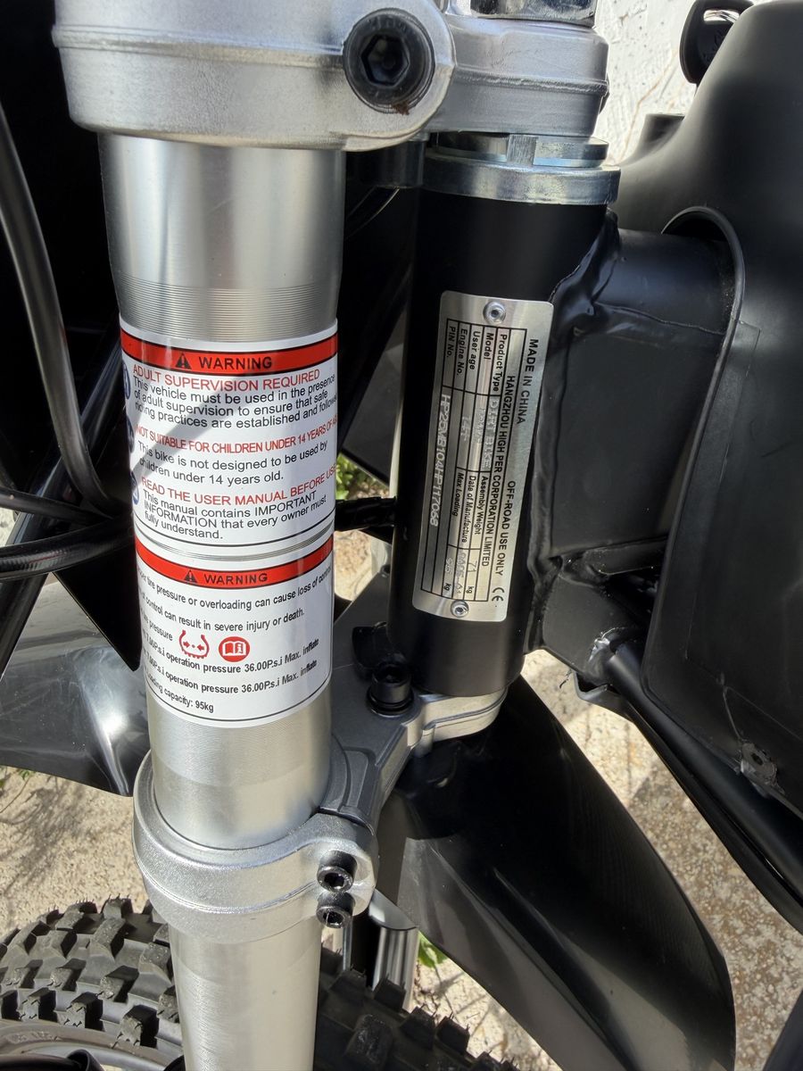Motor: 72 Volt 5000 Watt Battery: 72 Volt 30ah Li-Ion Controller: Far Driver 72v100ah Recommended Age: 13+ Max Rider Weight: 210 lbs 3 speed modes Charging Time: 4-6 hours Distance Per Charge: 40 miles (cruising speed on hard surface) Throttle: Variable twist-grip Seat: Padded (single rider) Battery Meter: Yes